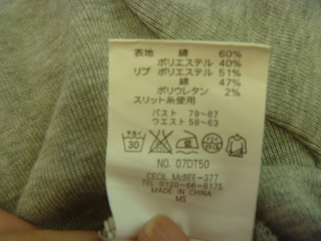 ●〔CECIL McBEE〕半袖フード付きTシャツ♪ロング グレー☆サイズ38