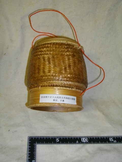 ラオス製? 竹製物入れ 脚付き