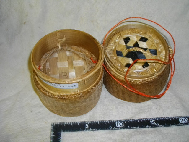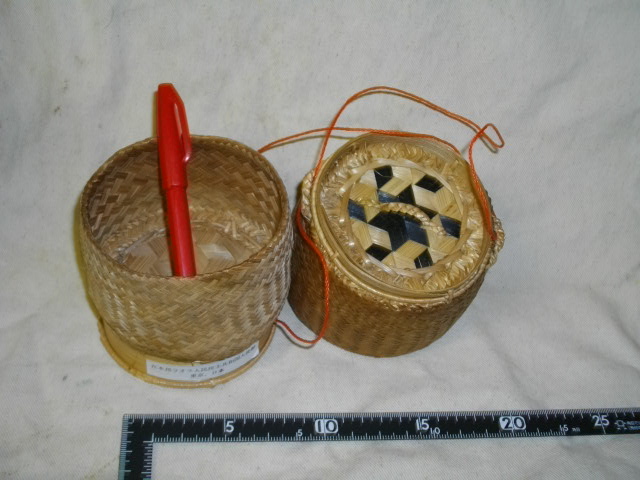 珍品フリマ] ラオス製? 竹製物入れ 脚付き 物入れ部分は 直径9cm 深さ6.5cm [送料無料]