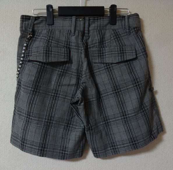 ショートパンツ グレー チェック 秋冬物 ウエスト73 チャーム付き kktsyr k f ③1210★
