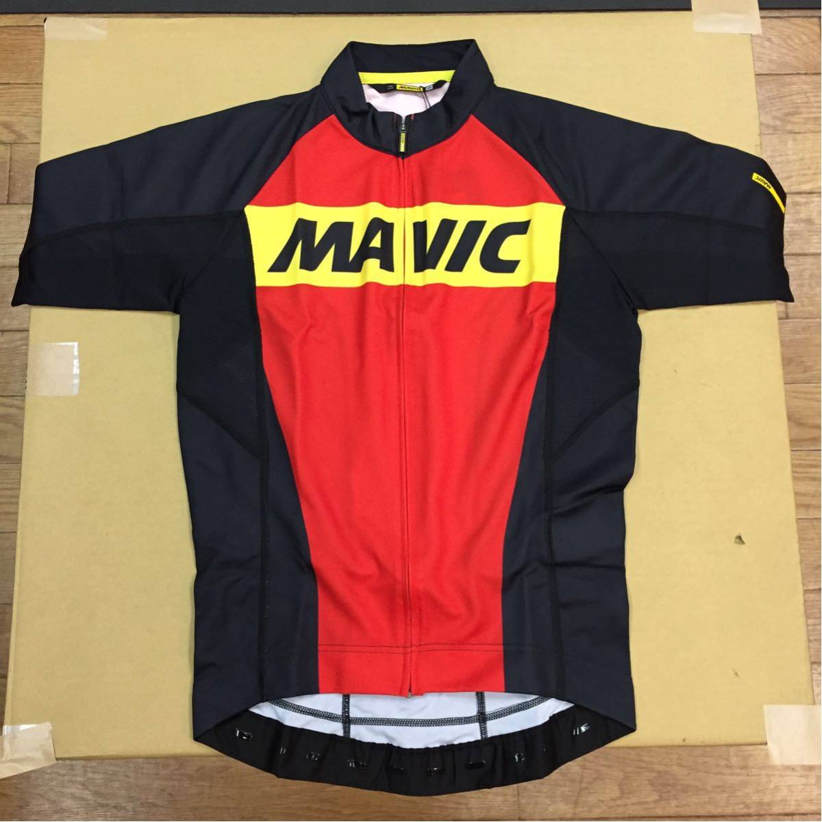 マヴィックのコズミックジャージです。新品でサイズはMです。身幅約43cm、着丈約70cmです。