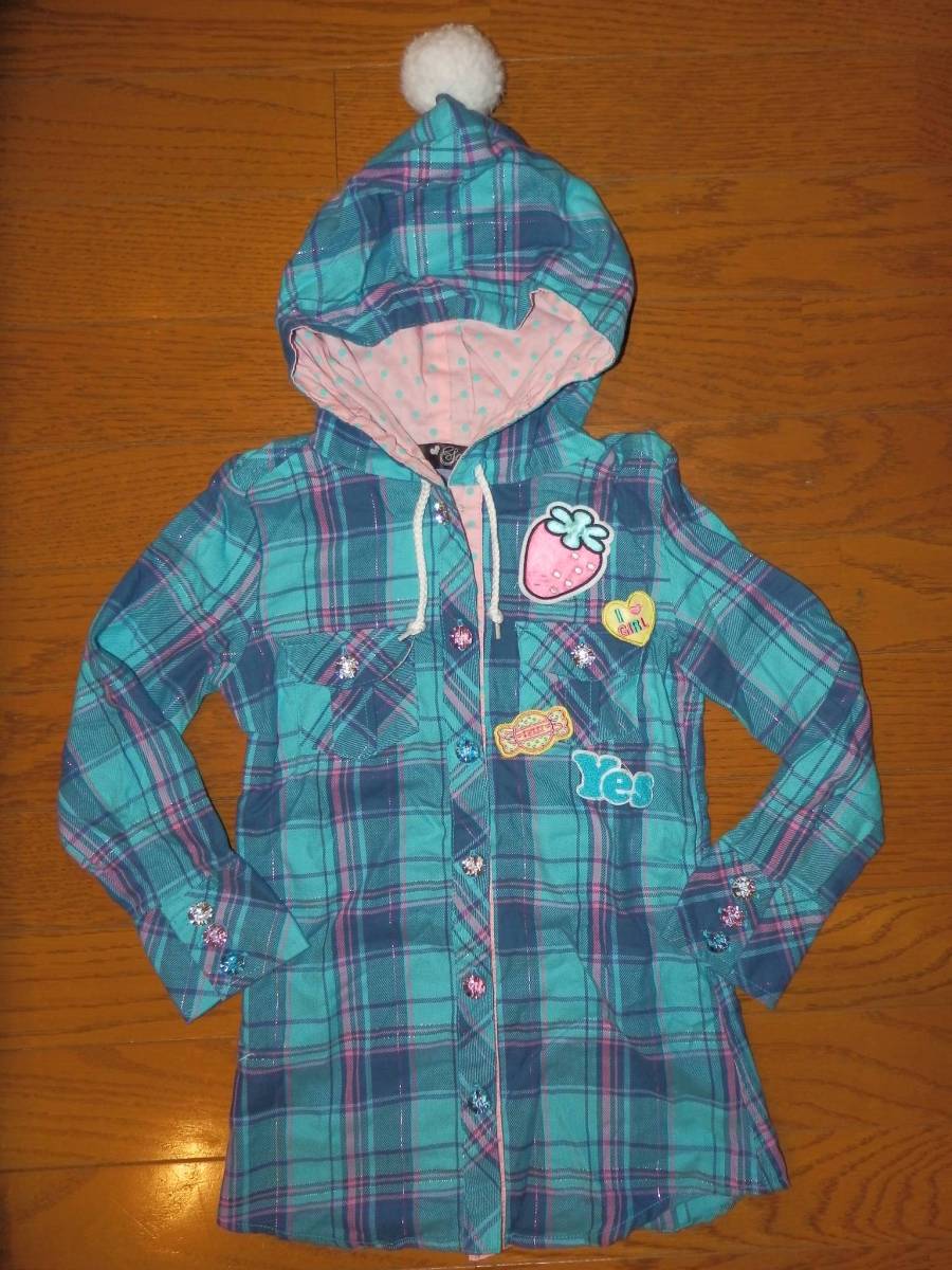 USED品★SOSPITA フード付きチェックシャツ 110 ブルー |
