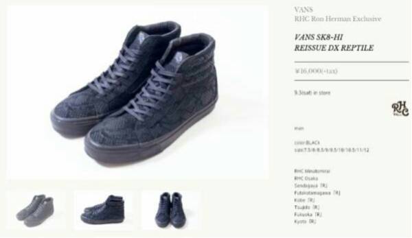 正規品 完売 レア VANS SK8 HI × ロンハーマン RHC exclusive コラボ 黒 スエード US8
