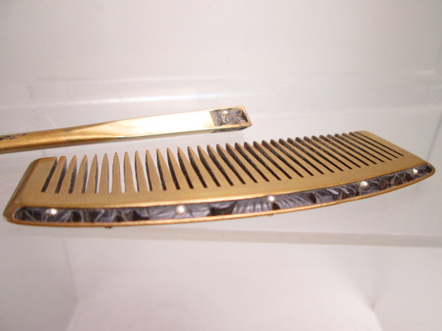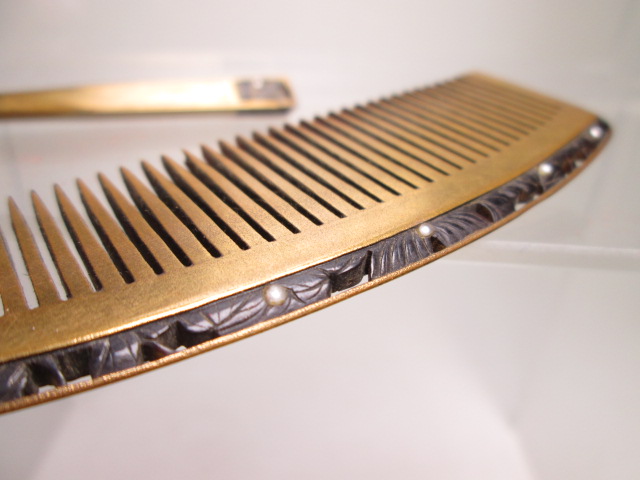【江月】アンティーク・本鼈甲 ベビーパール飾り金蒔絵の櫛&笄 木箱付