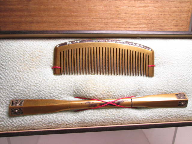 状態は良く、虫食いは有りません。笄の中央部分に金蒔絵に擦れが有ります。