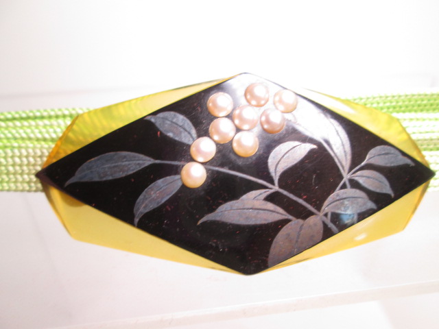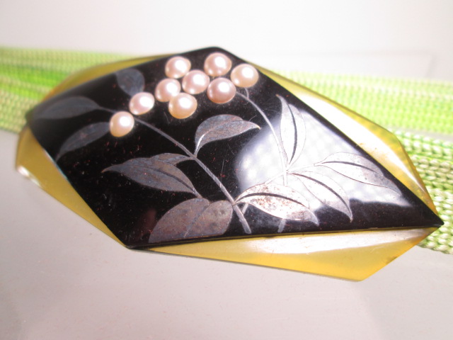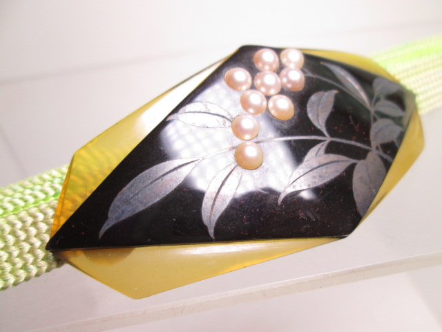 【江月】☆アンティーク・小野春 本鼈甲大振り 7cm真珠飾り南天の帯留め 共ケース付