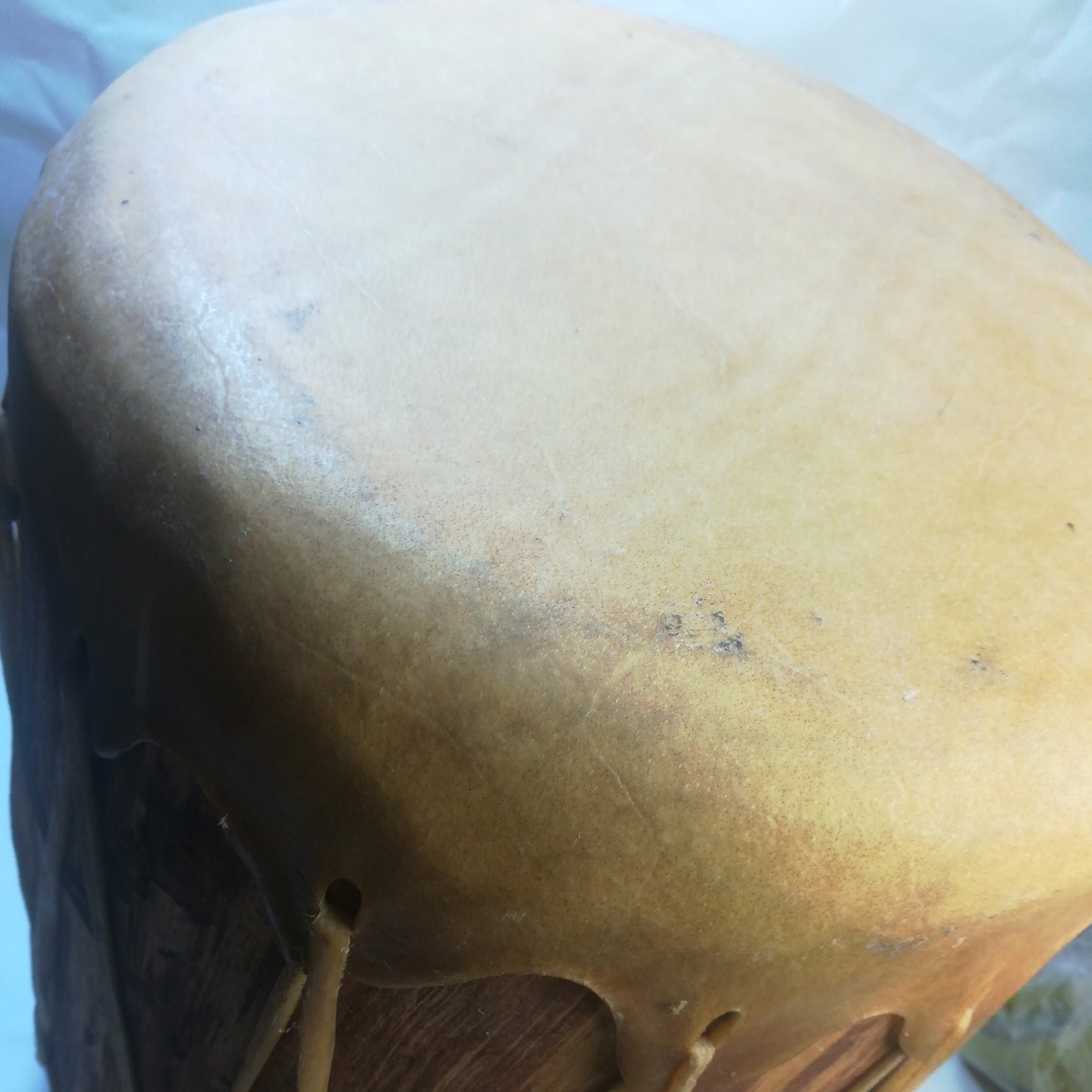 丸太をそのままくりぬいて、両面に革が張ってある 俗称 プエブロドラム あるいはログドラムです。