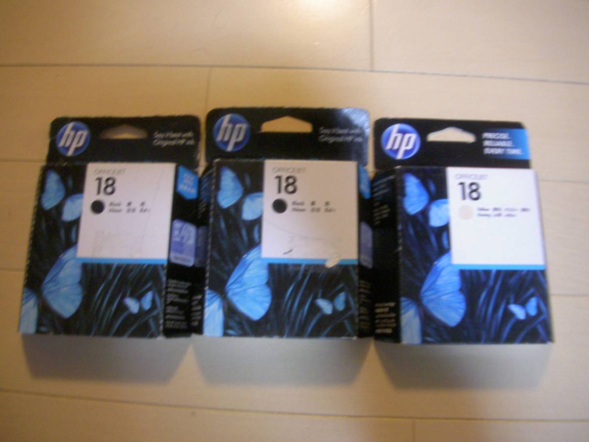 純正、HPのインクカートリッジ、18の3箱セットです。