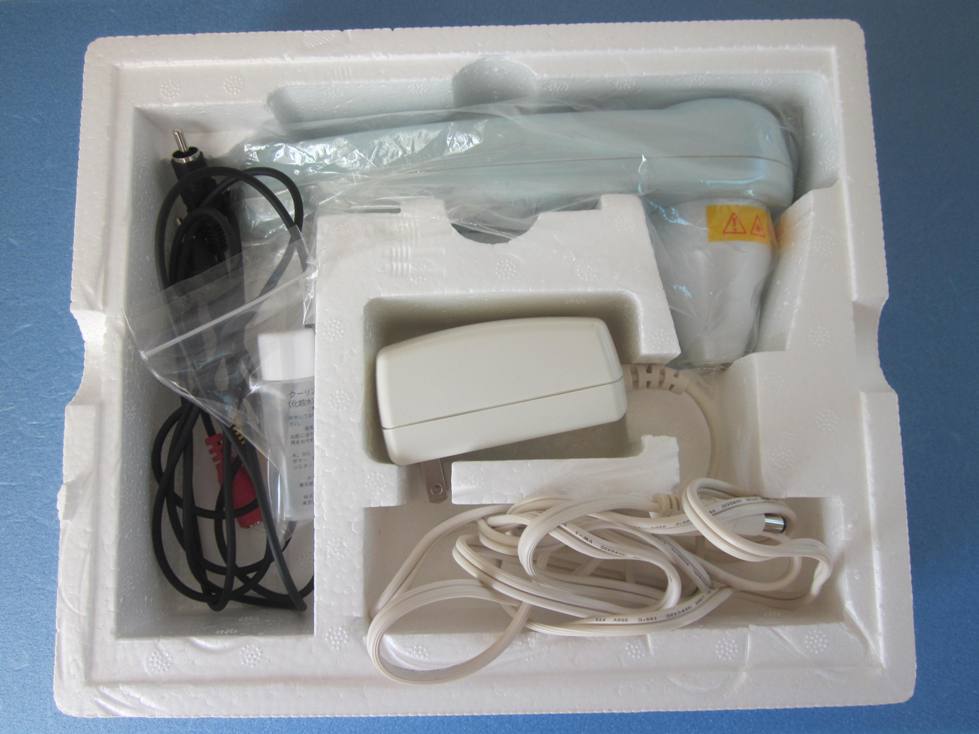 出品物:本体、ACアダプタ、ビデオ接続ケーブル、クーリングジェル(10ml) 、取扱説明書、取扱説明ビデオ。