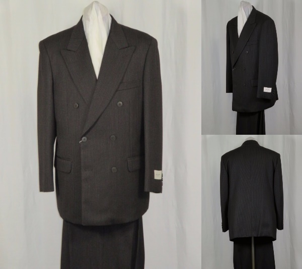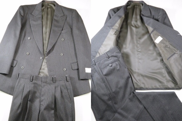 ★☆ YAM-76 ダブル6B×2 P衿 スーツ 新品 秋冬 黒系縞 日本製 ☆★