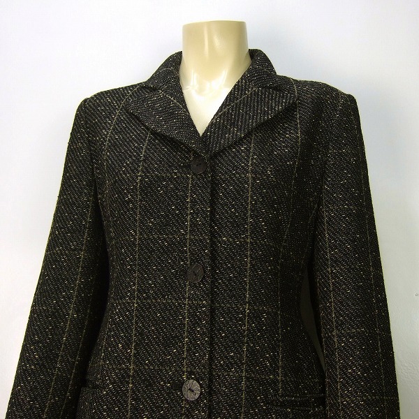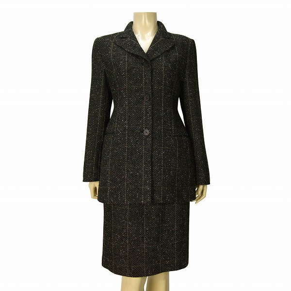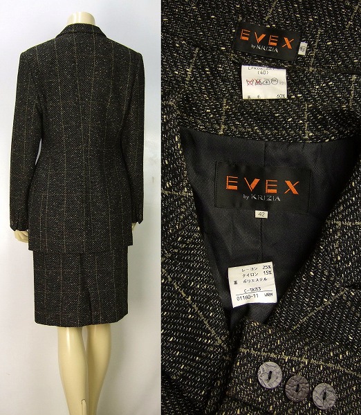 A 美品★EVEX by KRIZIA クリッツィア★上級ツイード&チェック柄生地*貴賓スカートスーツ*上42(11号*L*40相当)*下40(9号*M*38相当)