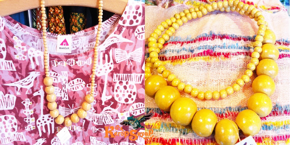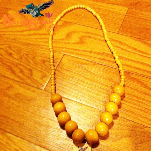 木製ビーズを連ねたネックレスです。ナチュラルな風合いが◎