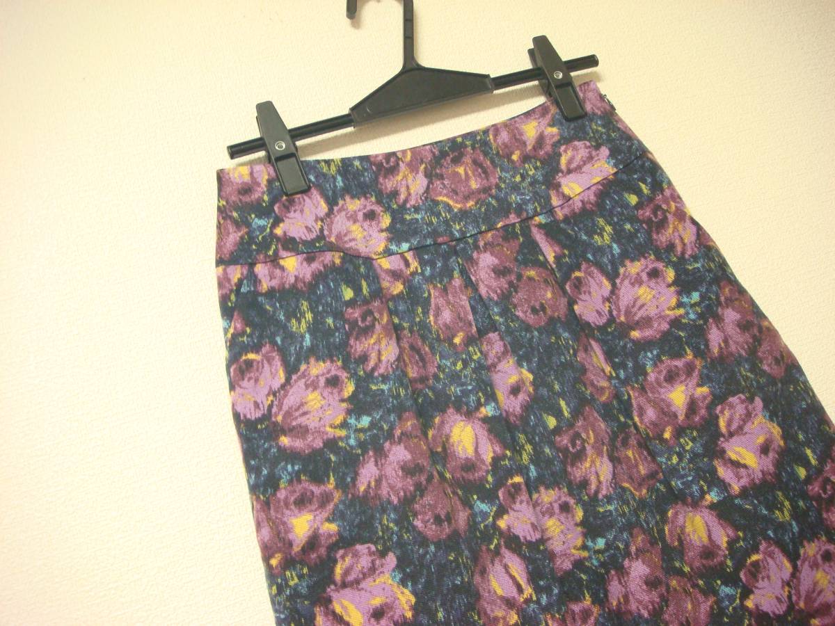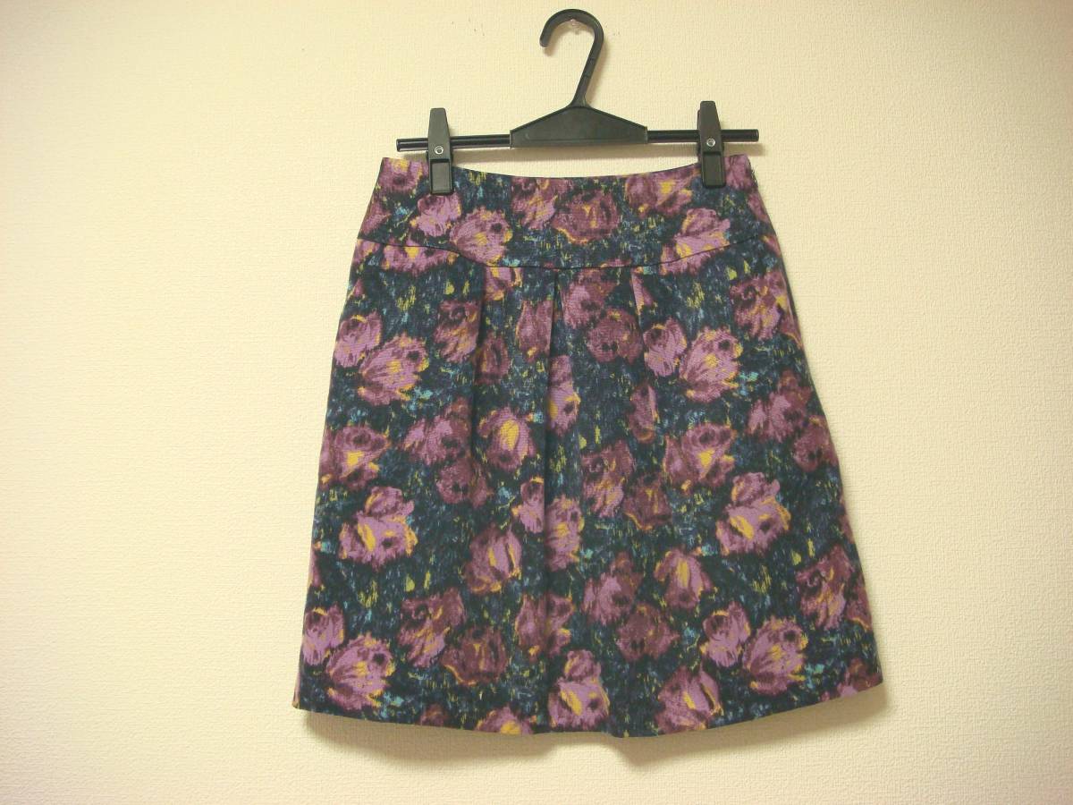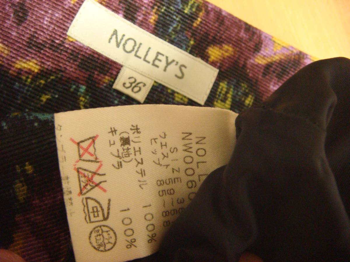 ノーリーズ ジャガード風 タック入りデザイン スカート 36 紫 美品 薄手