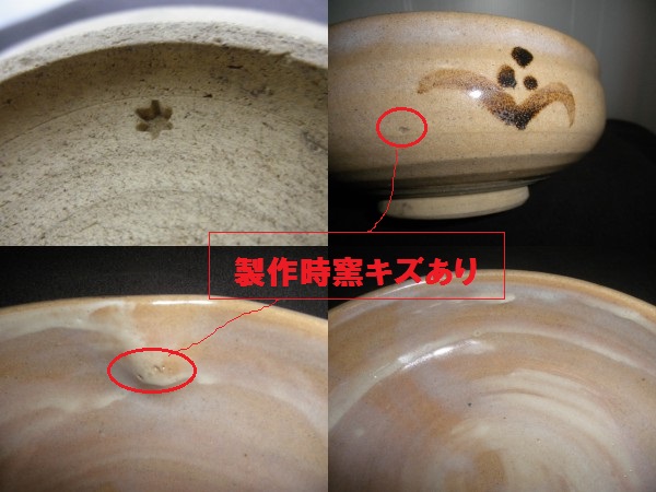 | お茶の水窯 五代 妙見屋捷延 作 の菓子鉢です。 側面に3か所絵唐津が、絵付けされています。 ニュウ、欠けはございません。 画像で表示の様に側面に及び見込みに製作時の窯キズがございます。 画像でご判断をお願いいたします。 サイズ 上径18.7cm×17.8cm 高さ7.8cm ーーーーーーーーーーーーーーーーーーーーーーーーーーーーーーーーーー 神経質なお方・些細な事が気になるお方、 または、新品をお求めのお方は、ご入札をお控えください。 ♪中古品をご理解の上、ノークレームノーリターンでお願いいたします。 ♪お客様のPC環境で、実物の商品の色と多少の誤差が生じる場合がございます。それらの点を十分ご理解いただいた上でご入札頂きますようお願い申し上げます。。 ♪発送は基本的に、ゆうパック60サイズ(持込割引120円引)での発送になります。 ♪お安い送料を、ご希望される場合、補償はございませんが定形外可です。 ♪定形外郵便円(破損、不着の補償無し、追跡無しです。) ―――――――――――――――――――――――――――――――――――――――― ※追跡をご希望の場合、定形外送料プラス特定記録を付けることで追跡確認ができます。ご理解ください。 ―――――――――――――――――――――――――――――――――――――――― ♪梱包材は原則的段ボールなど再生のものを利用しております。 プチプチで包んでしっかり丁寧梱包を心がけていますのでご安心ください。 ♪商品の説明及び注意事項に(同意されての上で)ご入札をお願い致します。 ―――――――――――――――――――――――――――――――――――――――― ♪たくさん出品していますので、同時梱包は大歓迎です!(品物によっては送料が、変更になります。ご了承ください。) ♪気になる点がございましたら、ご質問にてお願いいたします。 | |||