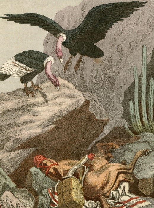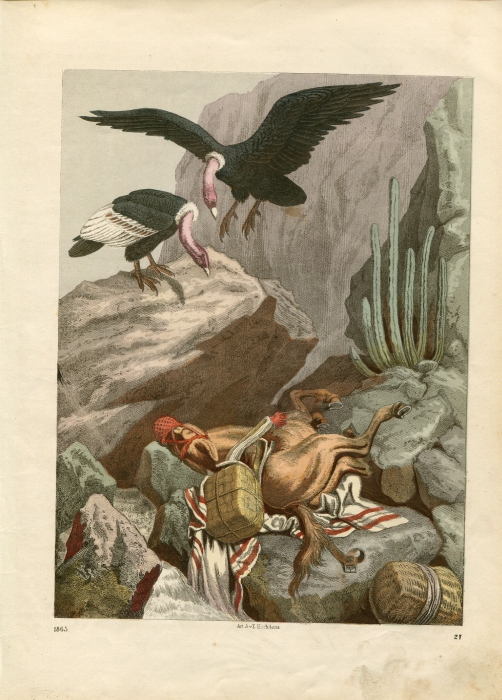 1865年 ドイツ 手彩色 銅版画 コンドル科 コンドル属 アンデスコンドル 博物画