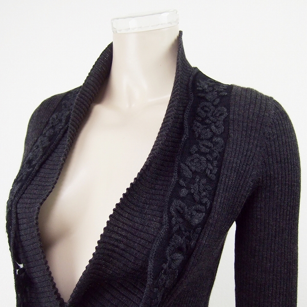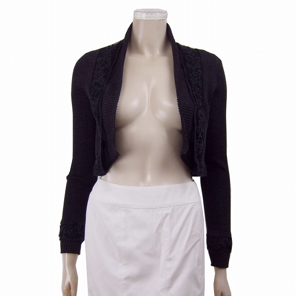 ![]() ![]() 落札後はオークション終了のお知らせメールに出品者からのメッセージが御座います。 自己紹介欄には急な休み等の記載をする場合が御座いますので一度お目通し頂きます様お願いいたします。ご一読の上オークション終了後2日以内の連絡、 落札後4日以内のご入金のお約束を守って頂ける方のご入札をお待ちしております。 小さい子供がおりますのでお急ぎのお取引を希望される方のご入札は遠慮下さいませ。 ---↓ここにブランド名記入---- ブランド名:+RICO HIROKO BIS リコ ヒロコビス ヒロココシノインターナショナル(株) ---↓ここに特徴記入---- 特徴:可憐なチュール&花モチーフボレロです。濃グレー系の伸び良いウール地リブニット!衿部&袖口にはニットと花刺繍レースの二重仕立て!素敵なパフスリーブ風デザインのウールボレロカーディガンです。 ---↓ここにサイズ記入---- サイズ : 11号 表示(トルソーは9号です) 実寸(平置き採寸) 肩幅34cm、身幅37cm、袖丈60cm、着丈39cm、裾幅36cm ---↓ここに素材記入---- 素材 : 毛100% チュール部分 ポリエステル100% 刺繍糸 毛100%