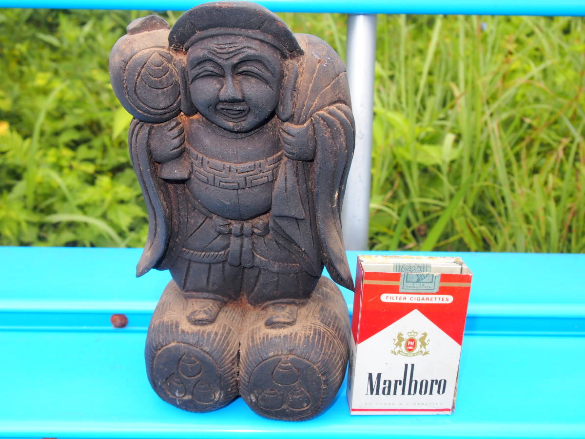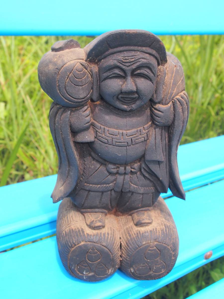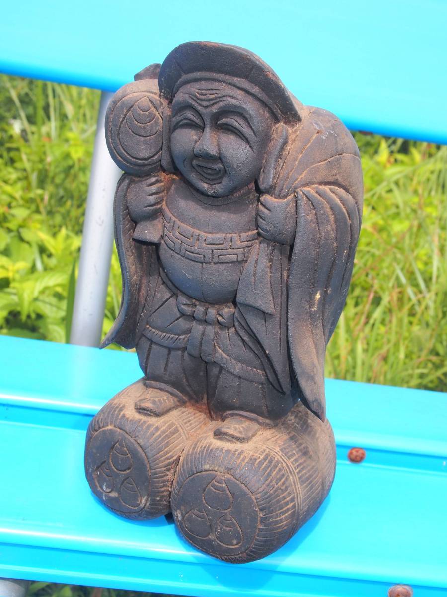 【天】山奥の旧家より 古い木彫りの大黒様 チョット大きめ21㎝   俵に宝珠 縁起物 商売繁盛 初出し
