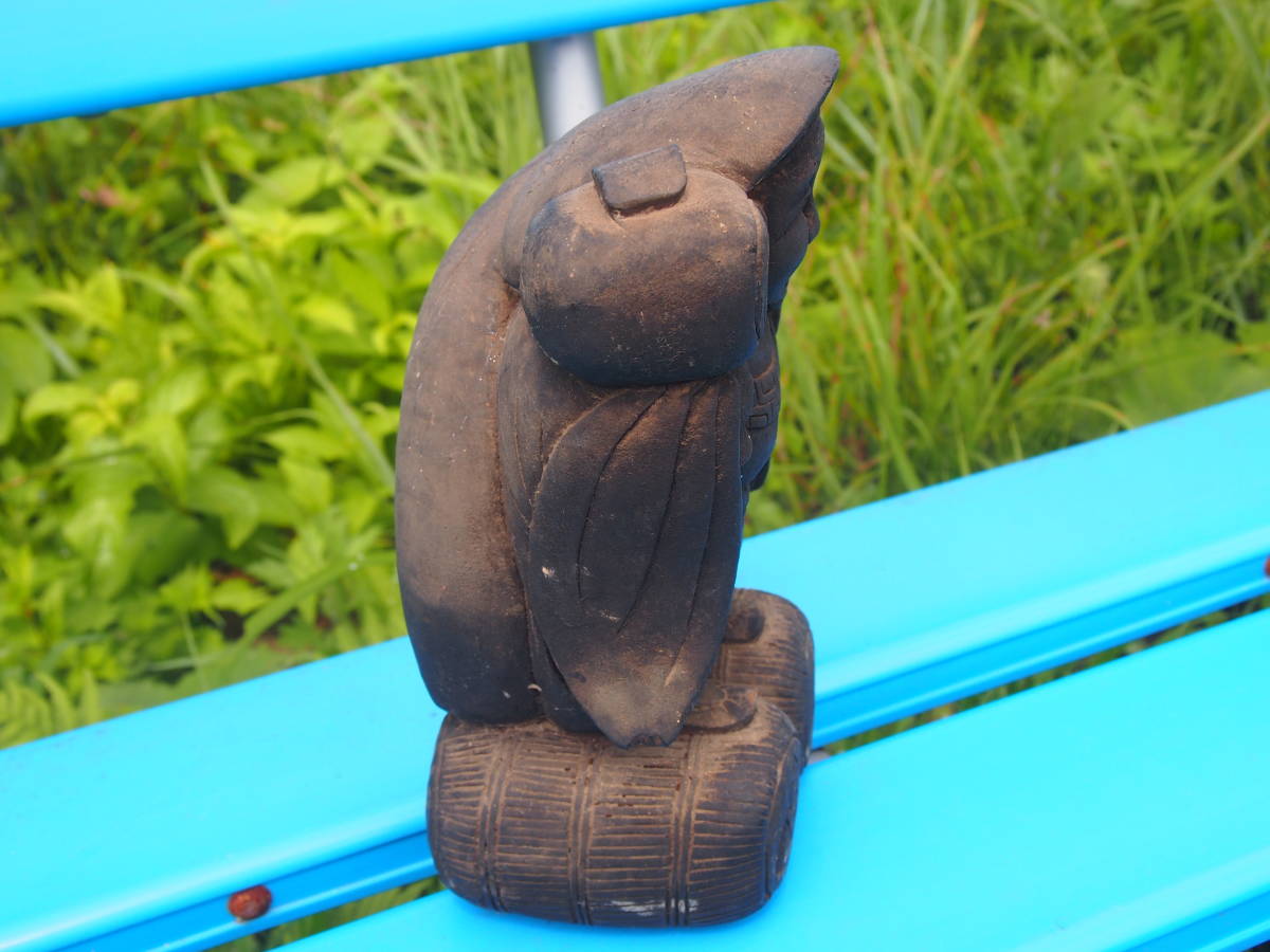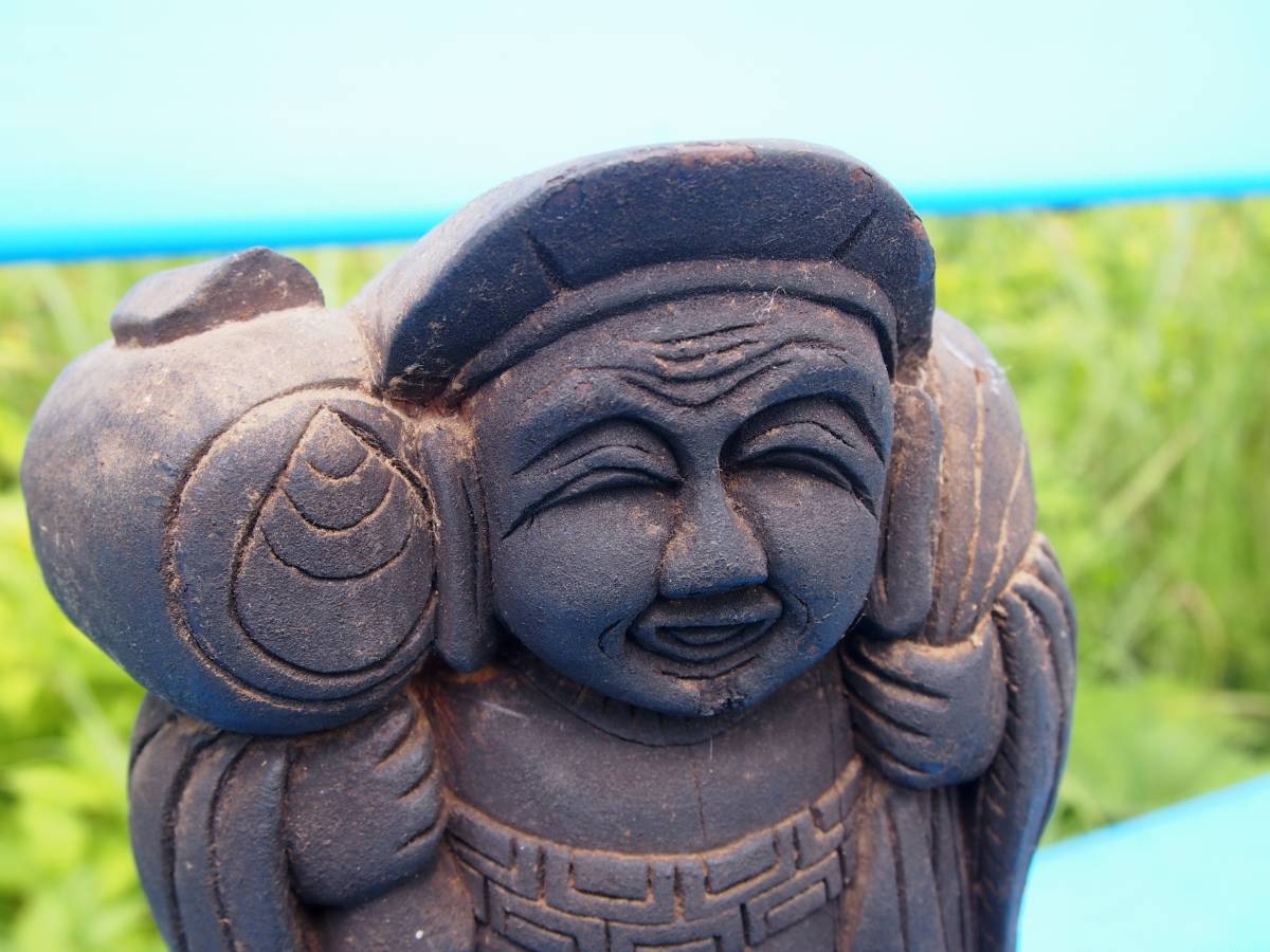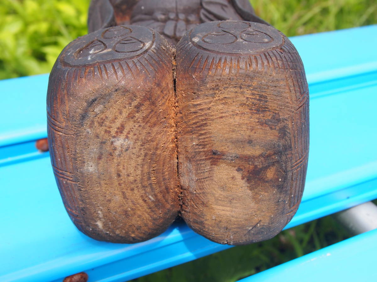 【天】山奥の旧家より 古い木彫りの大黒様 チョット大きめ21㎝   俵に宝珠 縁起物 商売繁盛 初出し