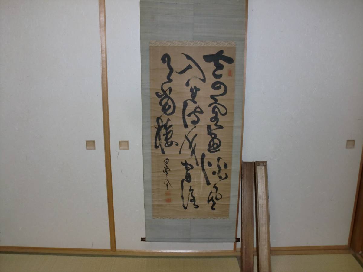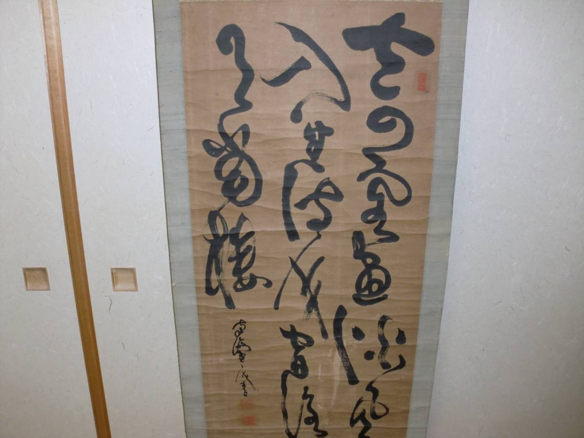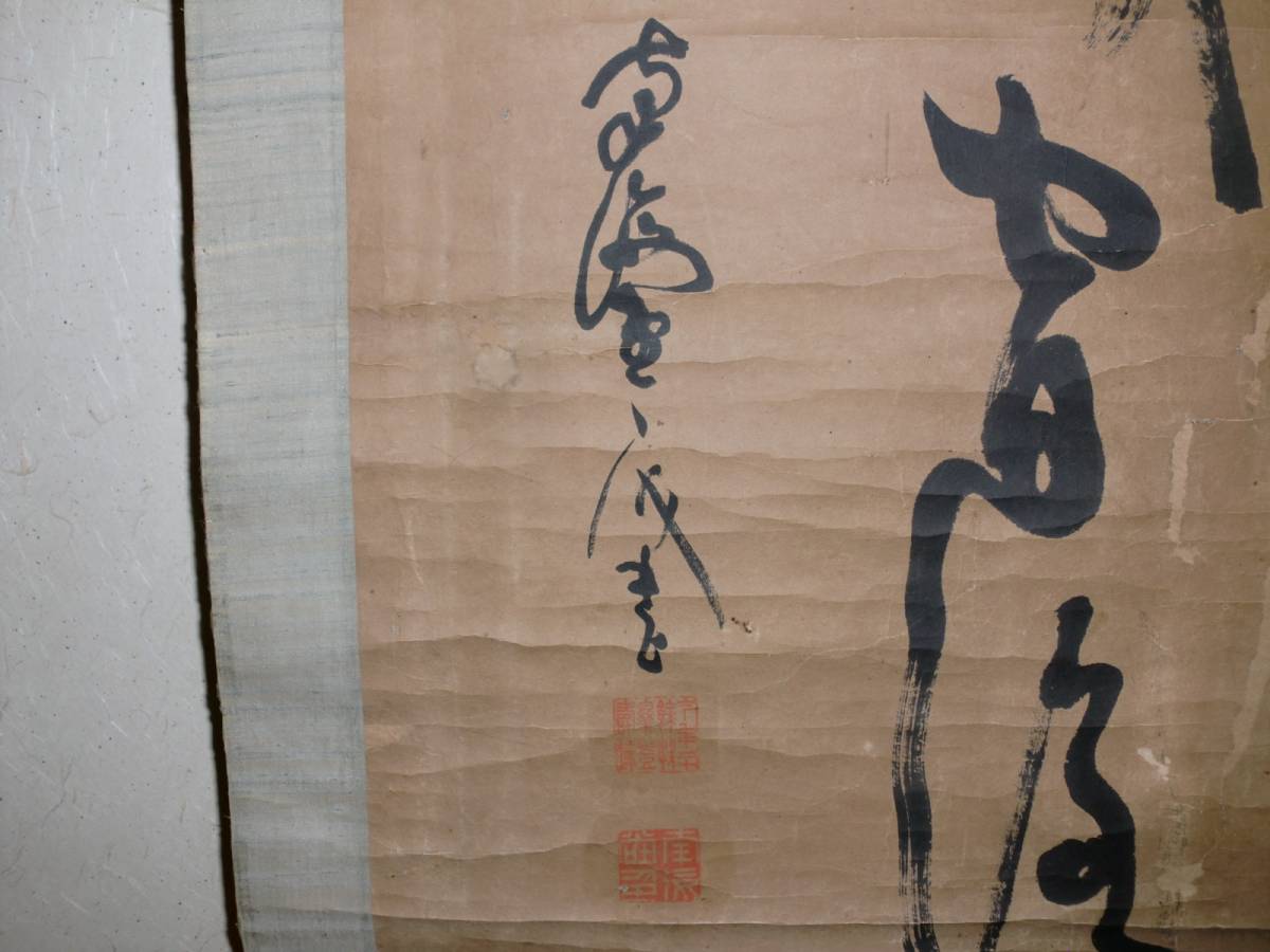 紙本、表装 絹、軸先 木(欄干型、欠けアリ)。