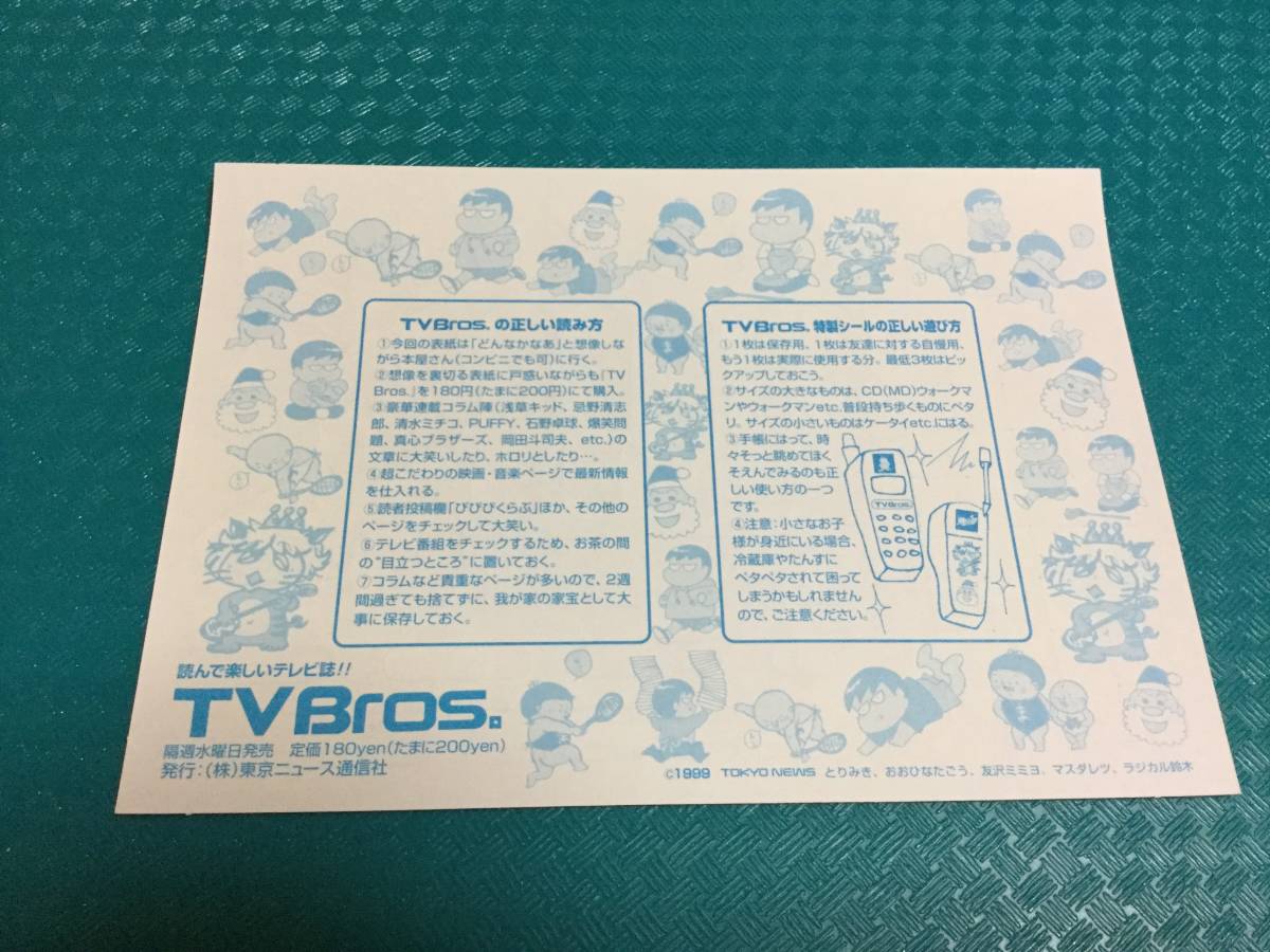 テレビブロス TV Bros. 1999年配布 ステッカー1枚 シール☆即決 とりみき おおひなたごう 友沢ミミヨ 東京ニュース通信社