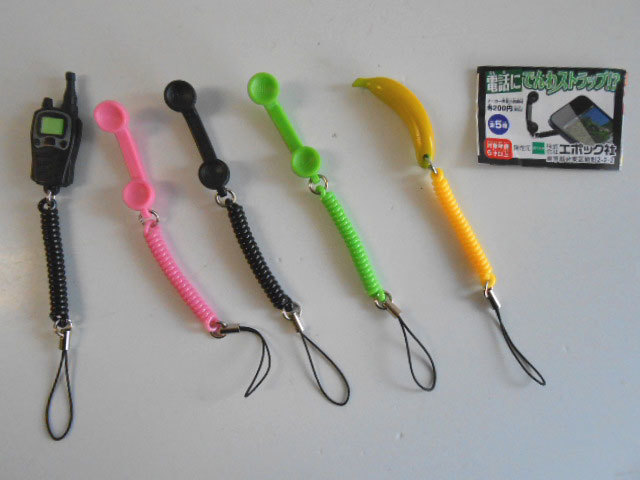1.黒電話 2.公衆電話(ミドリ) 3.公衆電話(ピンク) 4.無線機 5.シークレット(バナナ) ◇電話といえば、受話器に グルグル指に巻くコードでしょ! カールコードの感触が懐かしい~! |