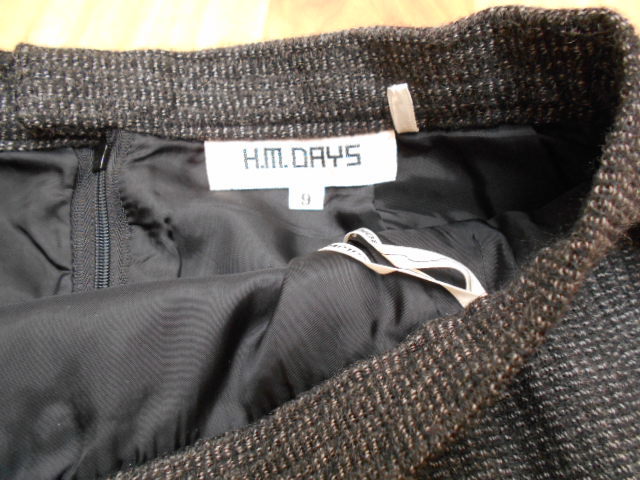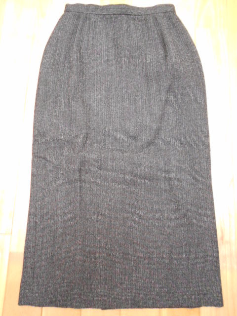 *ハナエモリH.M.DAYSのスカートです。高級ツイードを使用しているため非常に高級感がありおしゃれです。ビジネスやお出かけなど、いろいろなシーンで活躍してくれます。一緒に出品していますジャケットと合わせるとスーツになります。*お色: ダークグレイ系 *サイズ:6390とありますが9サイズ位です(実寸)ウエスト315cm、ヒップ46cm、総丈78cm(平置きの状態です。素人寸法のため、多少の誤差のあることをご了承ください)。*素材: 表地・毛100%、裏地・キュプラ100% *ほとんど着ていないので、状態は非常に良いです。高価なお品でしたので、気に入って下さる方に着ていただけたら幸いです。*出品に当たり十分注意してチェックしておりますが、見落としもあるかもしれないので細かいところを気になさる神経質な方はご入札をご遠慮ください。*非常にお安く提供させていただいておりますので、ノークレーム&ノーリターンでお願いいたします。