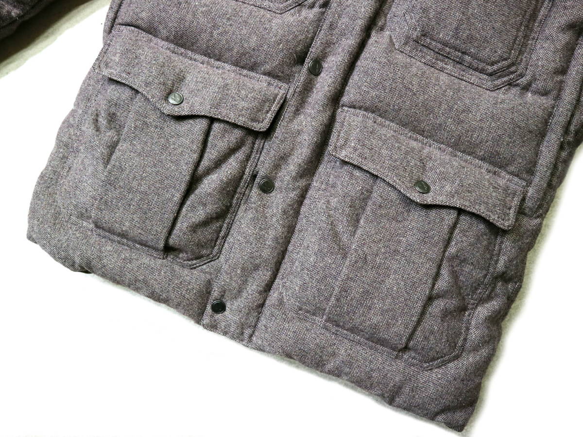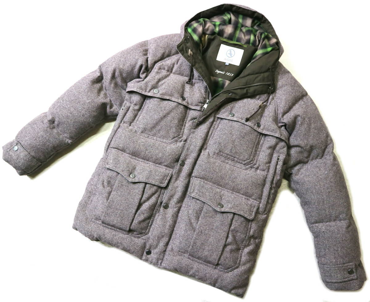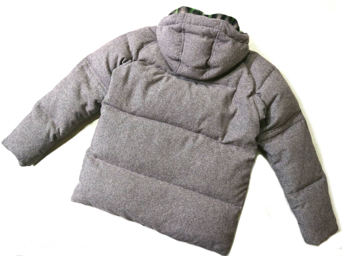 ・落ち着いた上品でお洒落なウール系生地、フード裏と見頃上部の裏地はチェック生地使用でとても雰囲気が良くお洒落です。エーグルのウール素材のダウンジャケットです。