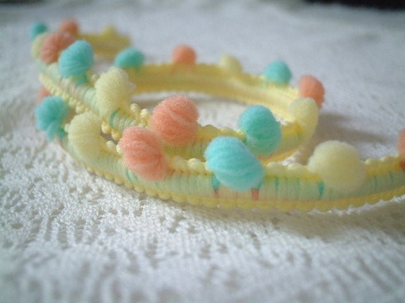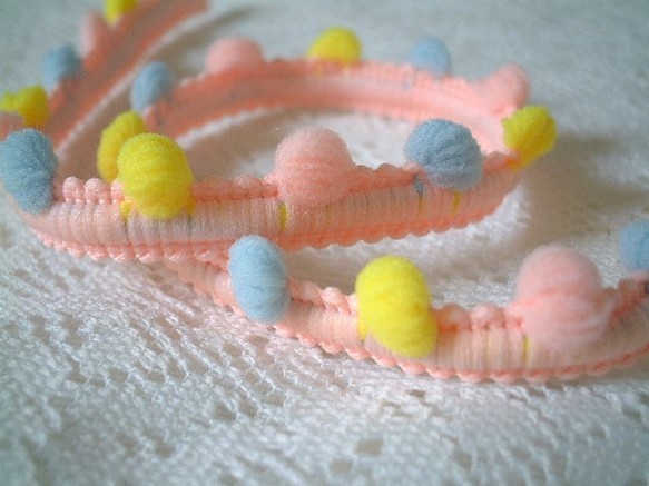 | ご覧頂きありがとうございます。 可愛らしいポップ色の大きなポンポンブレード。落札後に必ずご希望のお色をナビよりお知らせください。残りトリコロール色とルビーピンク、こげ茶色のみです 全体巾*約1.5cm*ポンポンのサイズ約8mm*ブレード巾9mm*継ぎがある場合がございます。 お取り置きも承りますので、落札後に1度必ずご連絡くださいませ。 オンラインショップとの同梱も可能です。 | ||