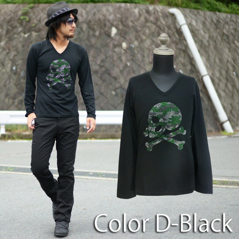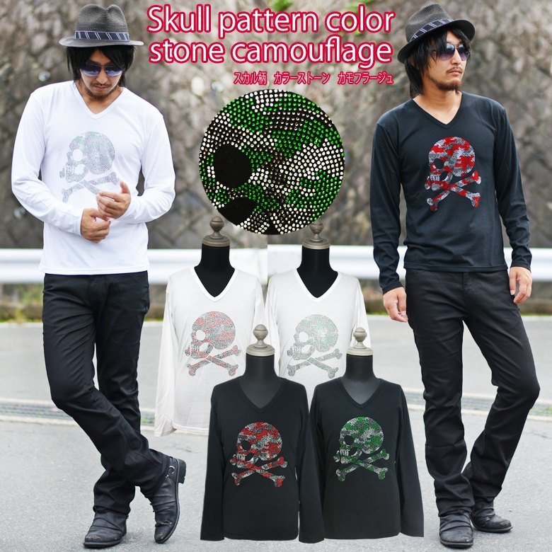Vネック ラインストーン スカル柄迷彩使用を入荷いたしました。