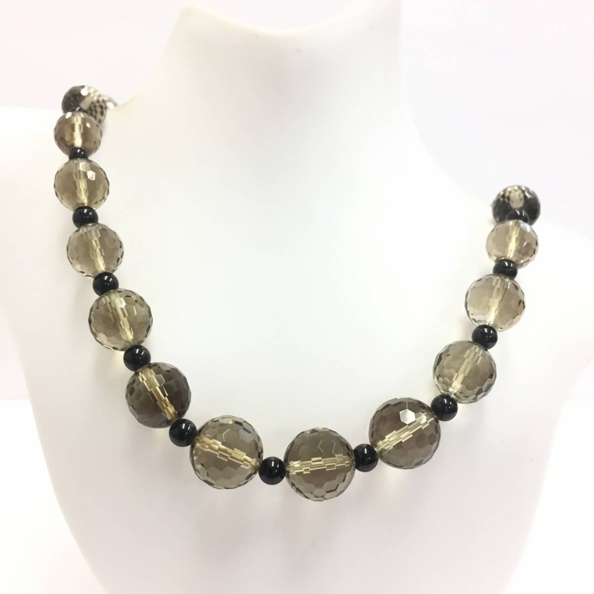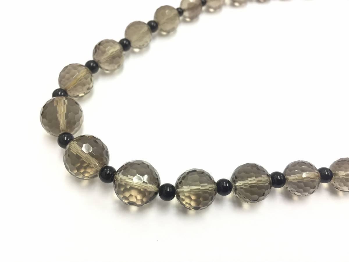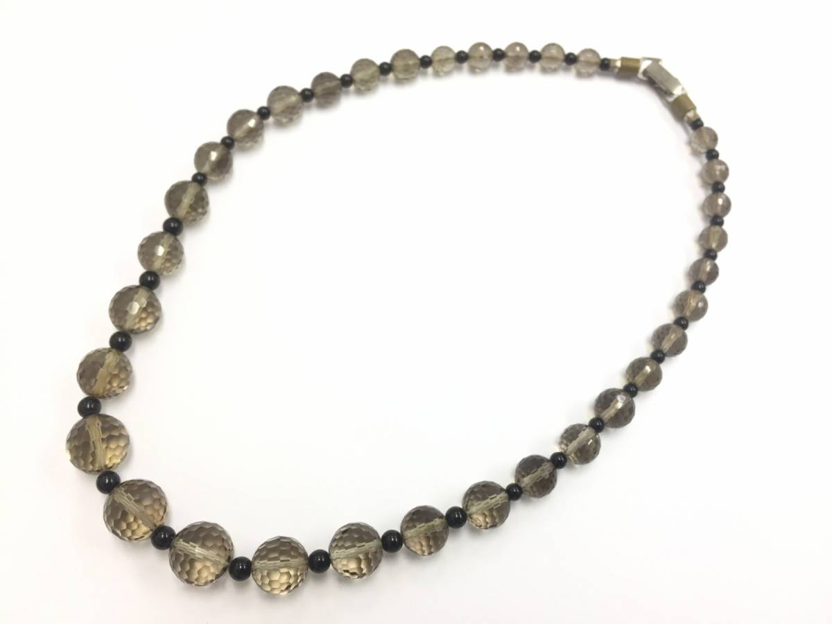 【ネックレス】約34cm スモーキークオーツのような色合い 1連 落ち着いた色合 オシャレ 数珠タイプ 上品