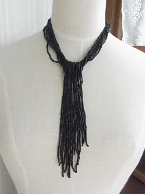 豪華10連 ブラックのビーズビジュー 黒 フリンジデザイン ネックレス●●