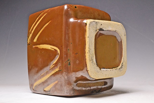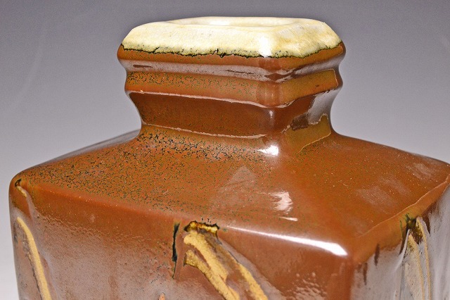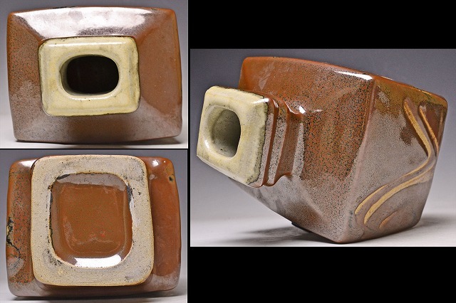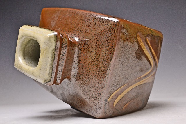 物故巨匠 佐久間藤太郎 氏を 父に持つ 巨匠 佐久間賢司 氏の 作品です。 美しい 柿釉 を たっぷりと 使い 指で 柔らかな 文様を 描いた 逸品です。