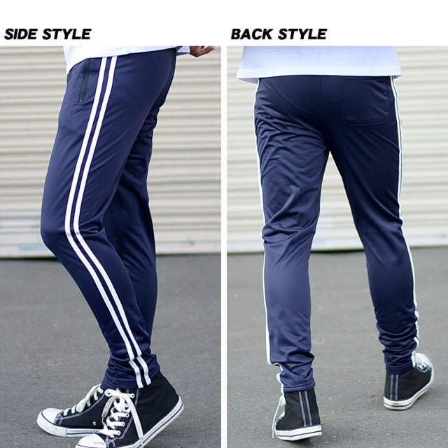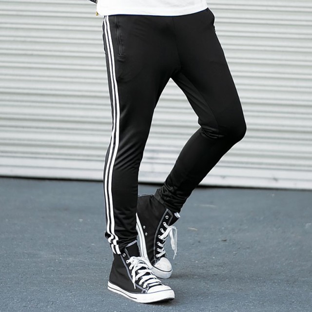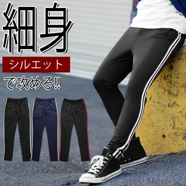 こだわりの新作2本ライン美脚系スリムジャージパンツ。