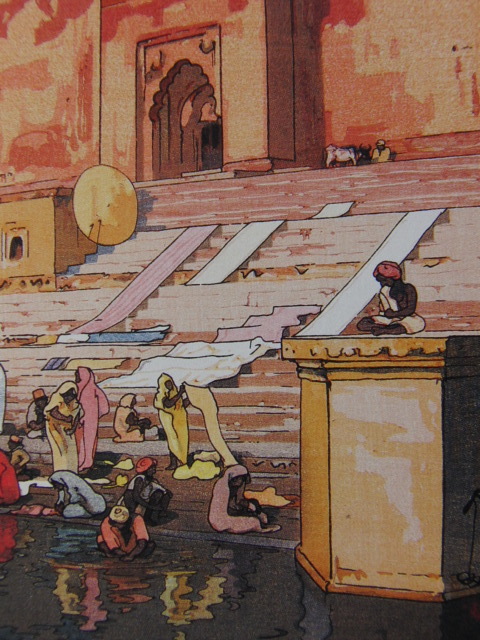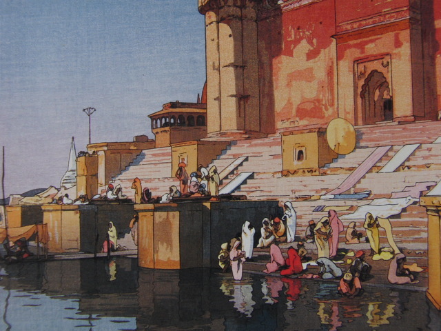 吉田博、ベナレスのガット、希少な額装用画集より、新品高級額装付、状態良好、送料無料、日本人画家
