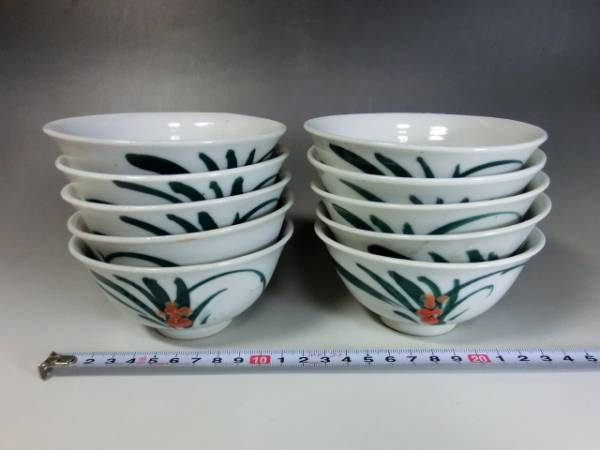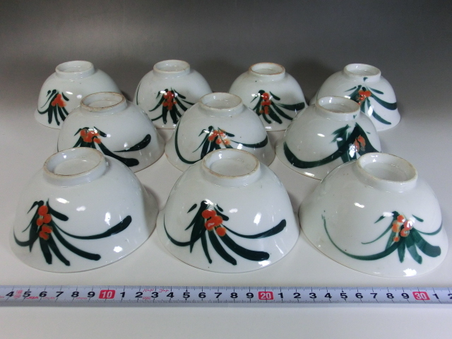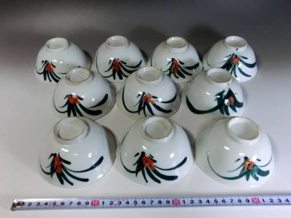 湯飲み■緑 唐草紋 10客 煎茶碗 お茶道具 骨董品■