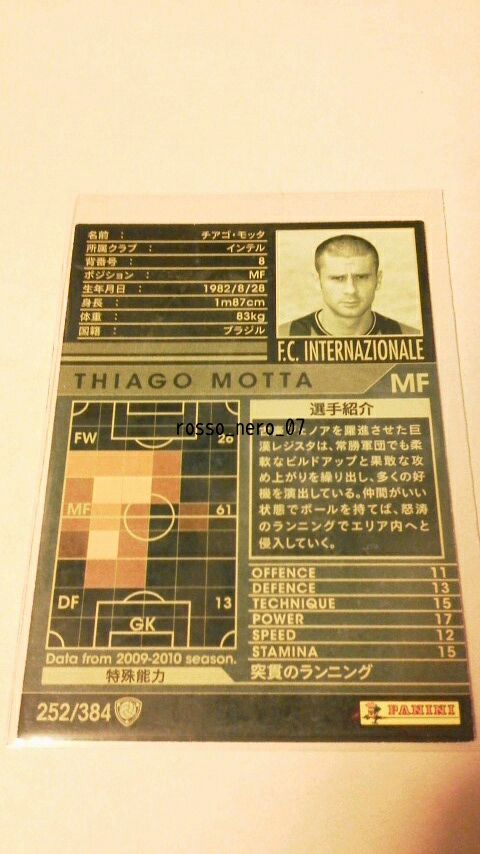☆WCCF2009-2010☆09-10☆252☆白☆チアゴ・モッタ☆インテル☆Thiago Motta☆F.C. Internazionale☆