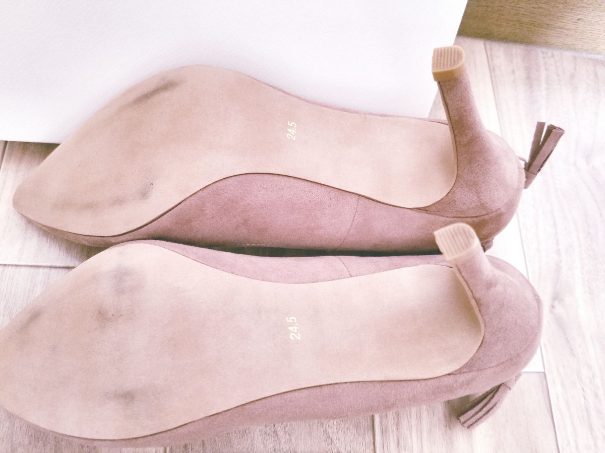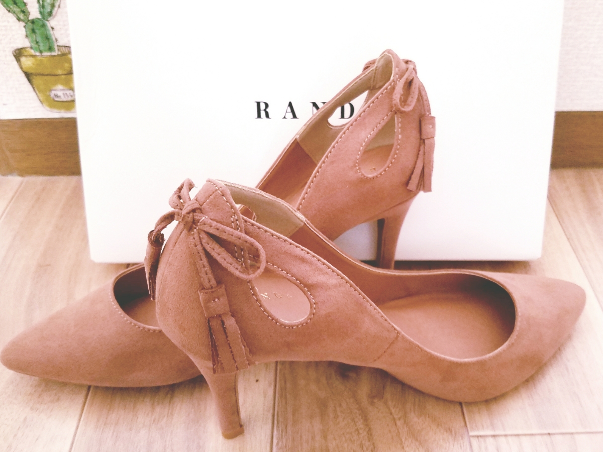 今年の春にRANDAで購入しました。ポインテッドトゥで足先が綺麗に見えます。後ろはリボンとカットワークでお洒落!スエード素材でオールシーズン履けます。