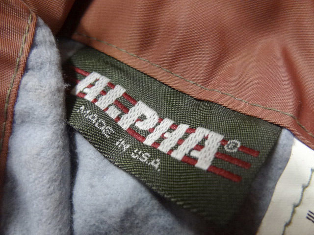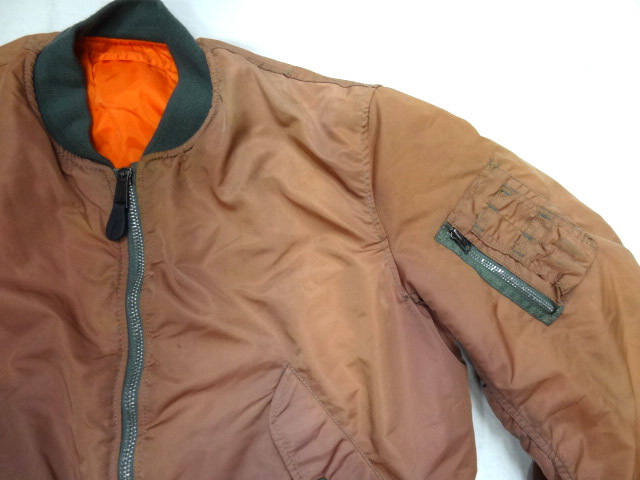 ビンテージ ALPHA アルファ MA1 80S 90S 希少 珍品 カラー 色 USA製 サイズ L ジッパー 茶 ブラウン レンガ 雰囲気 レア 色落ち フライト