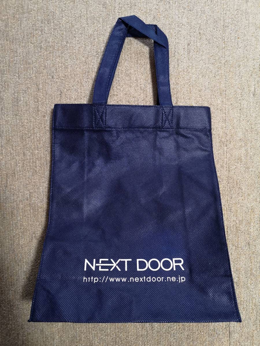 NEXT DOOR と書かれた紺色のバッグ1点を出品します。
