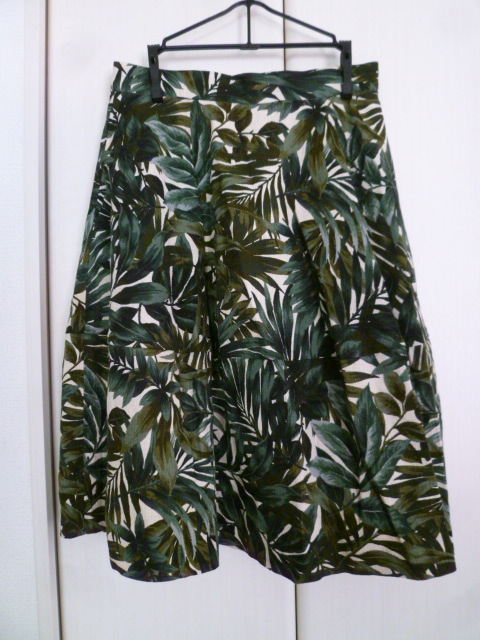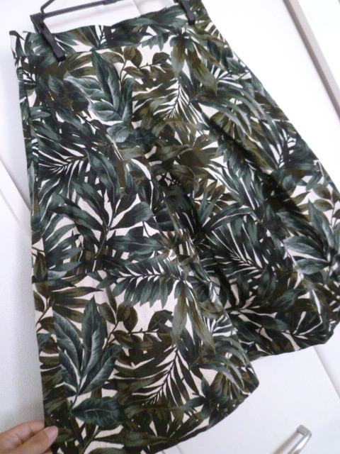 Grand Table/グランターブル△ボタニカル柄ふんわりフレアースカートM/膝丈ハワイアンリーフ柄△SK713