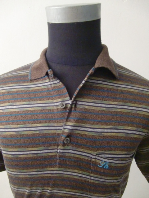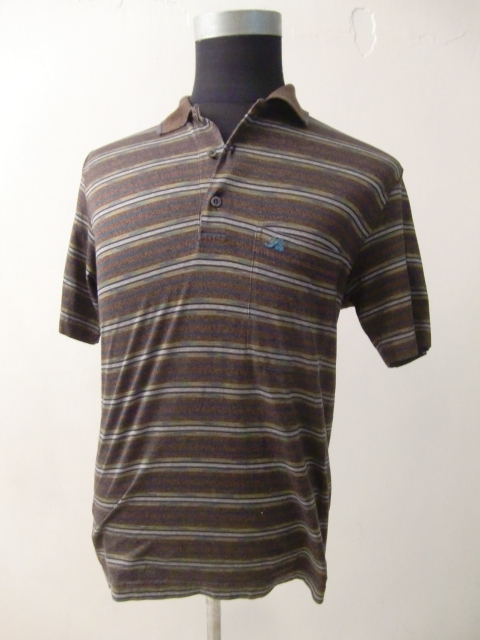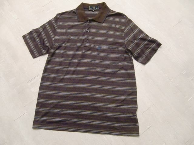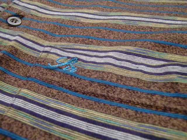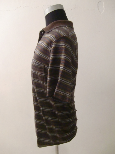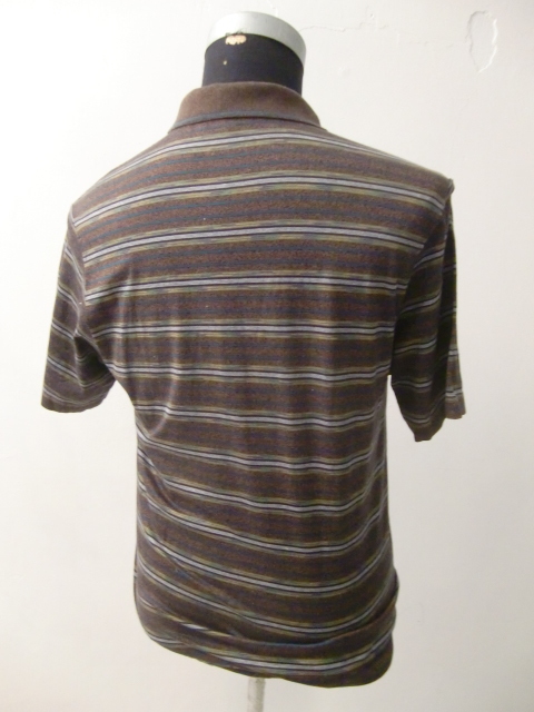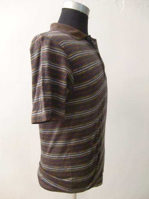 送料無料 80's イタリア製 SIRONI マルチ ボーダー 48 半袖 ポロシャツ リゾート シャツ カットソー ンテージ VINTAGE ITALY ゴルフウェア
