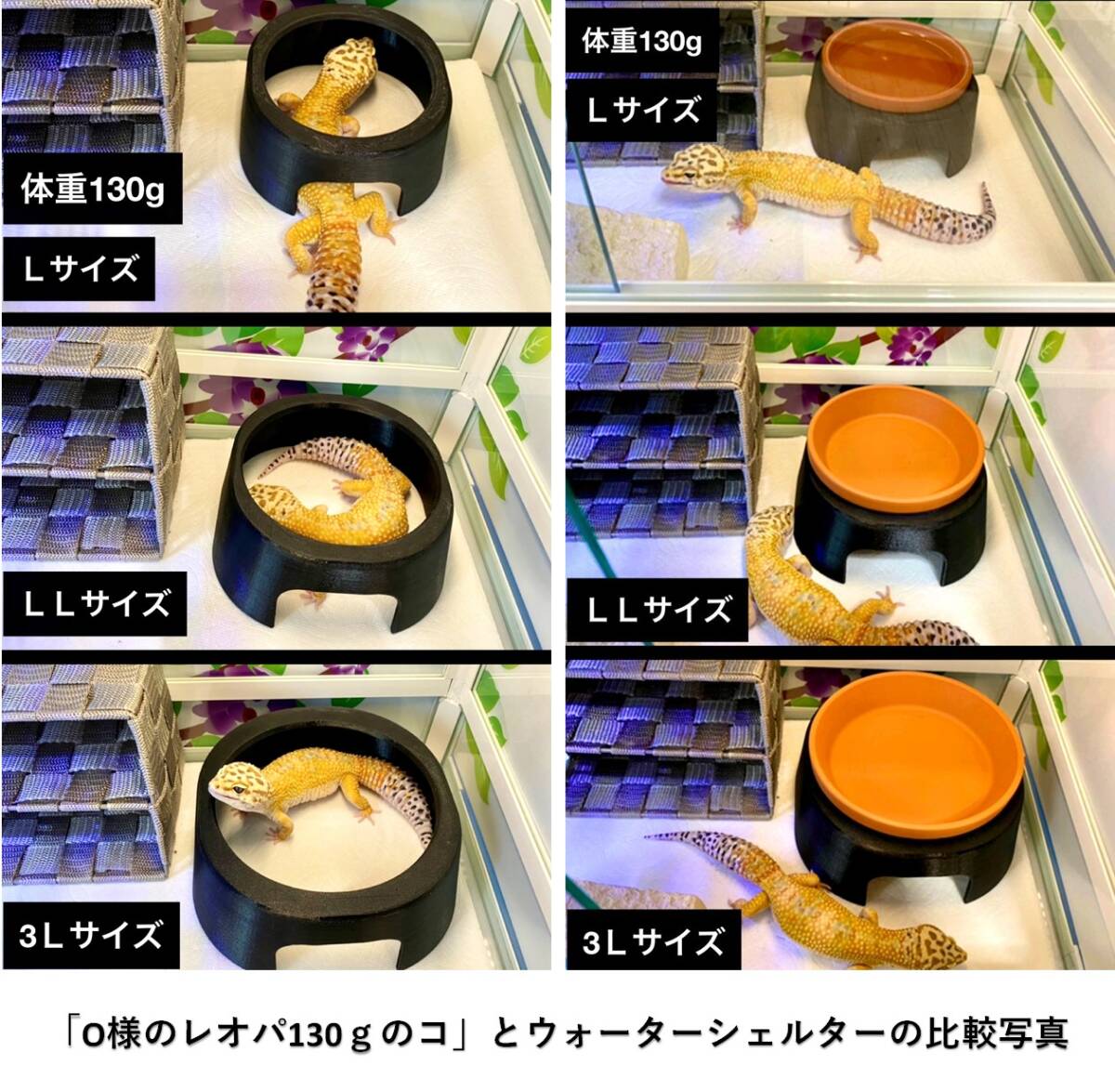 | 商品説明 | ・取外し可能型ウェットシェルター ・皿に水を溜めるだけで爬虫類が脱皮するのに理想的な高湿度スポットの環境を作れます。 ・ シェルター本体と水入れが分離するので水交換が簡単です。予備の水入れがあれば数秒で交換出来るので生体へのストレスが少ないです。 ・手作りで作っておりますので若干の品質にバラツキがあります。また、寸法や材質は都合により変更する場合があります。 材質 本体 ポリ乳酸 水入れ 陶器 Sサイズ(約) W87×D80×H39mm Mサイズ(約) W120×D105×H46mm Lサイズ(約) W136×D130×H72mm |