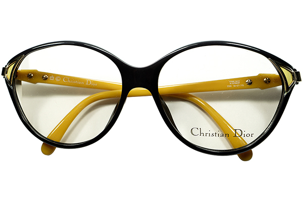 絶妙配色&真骨頂モードDESIGN 1980sデッドストック西ドイツ製 CHRISTIAN DIOR ディオール FOX系 PANTO シェイプ BLACK x MUSTARD a7935