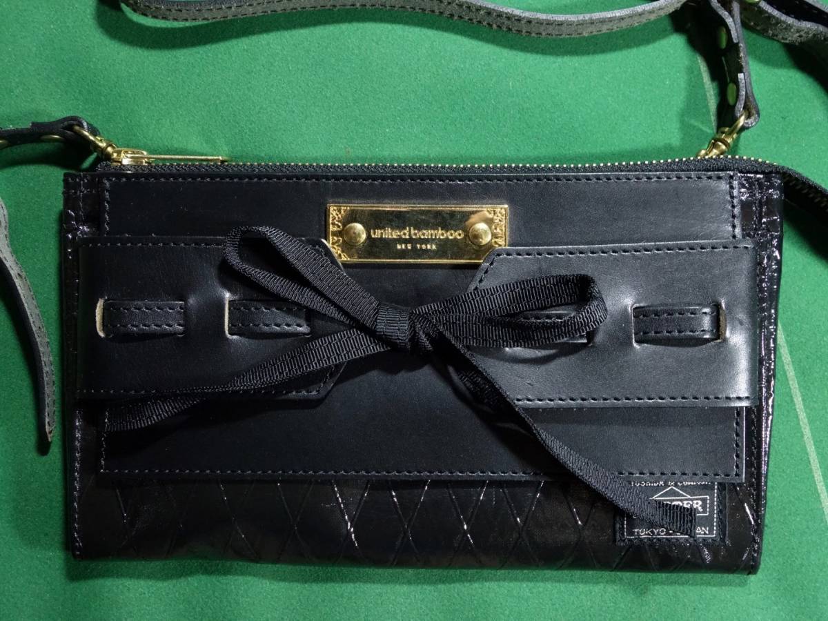 □ポーター UNITED BAMBOO コラボ X-PACナイロン&レザー素材 2WAY ショルダーポーチ クラッチバッグ ブラック 美品!!!□