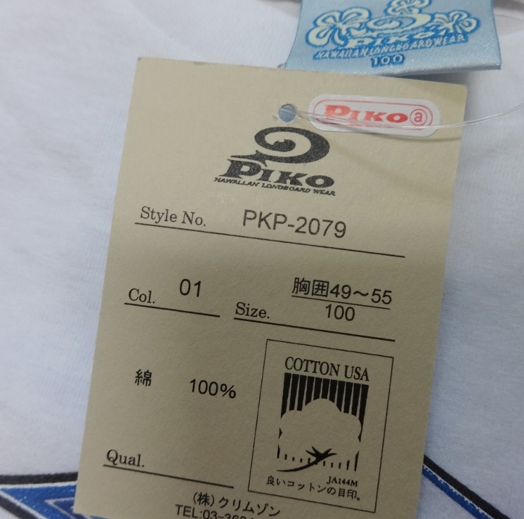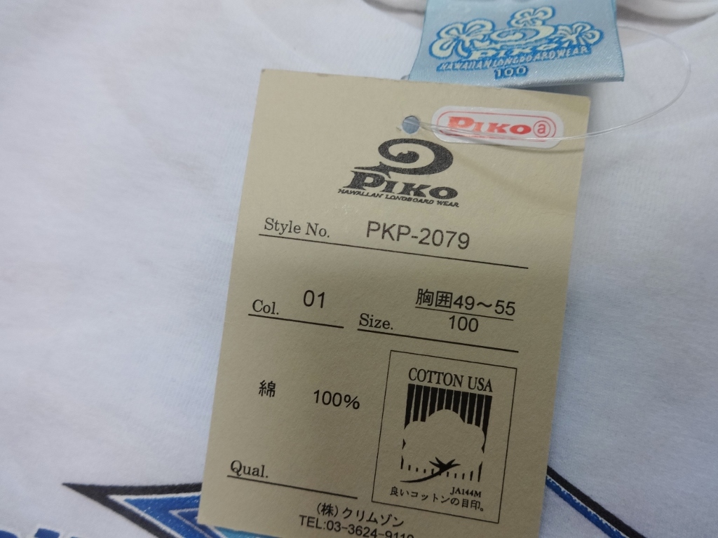 新品 PIKO Tシャツ KIDS【 100 cm 】コットン100% ピコ 白半袖