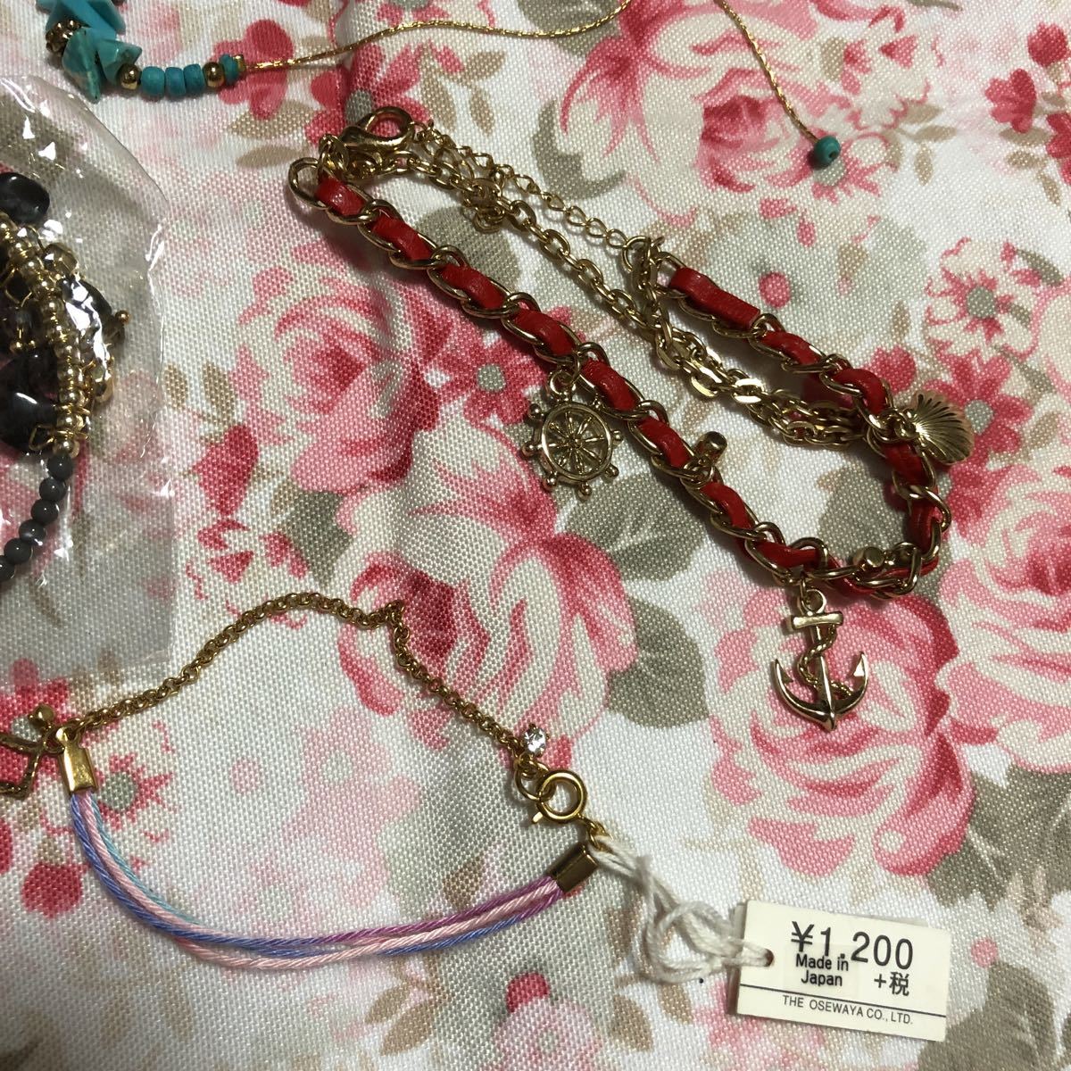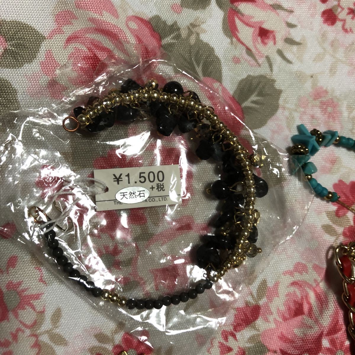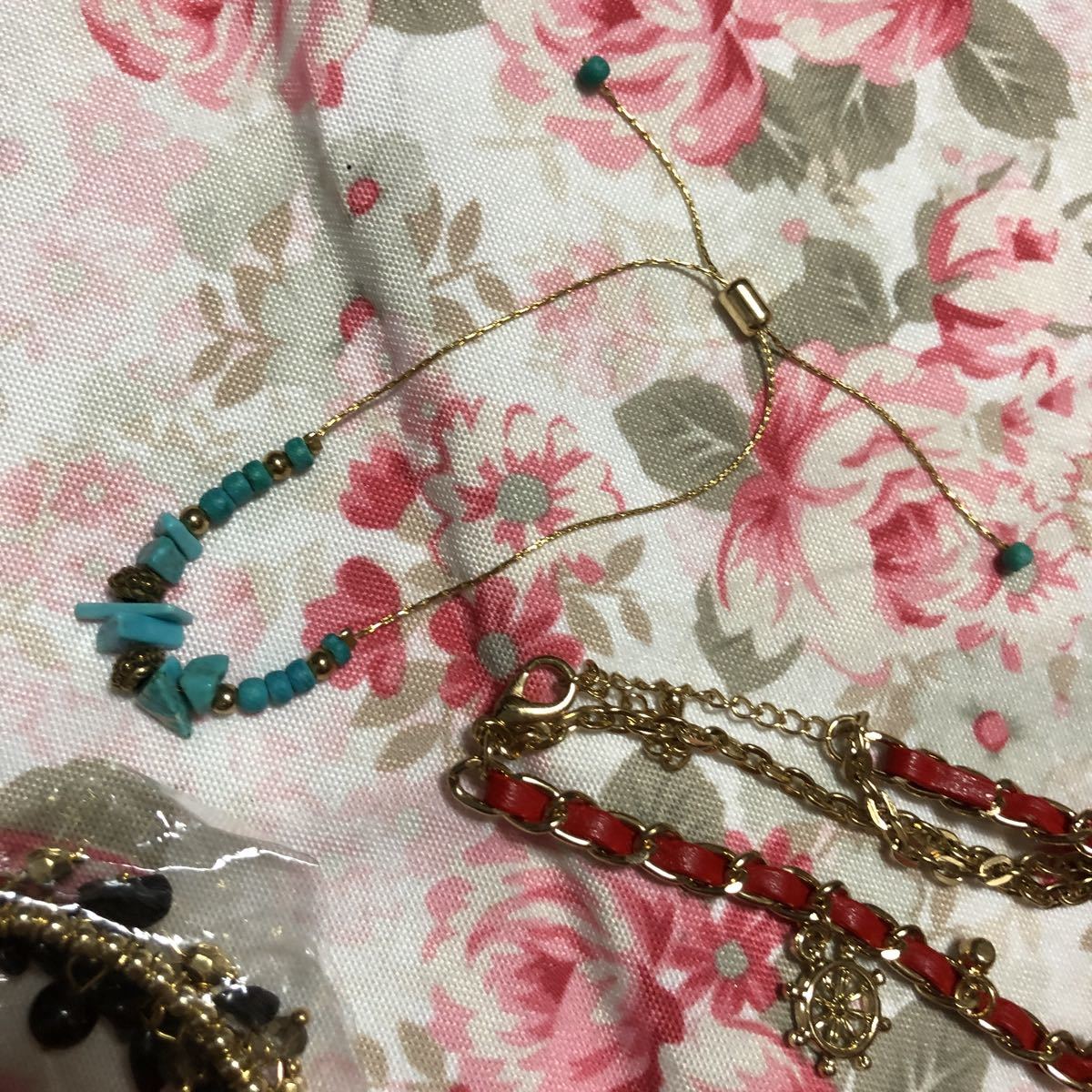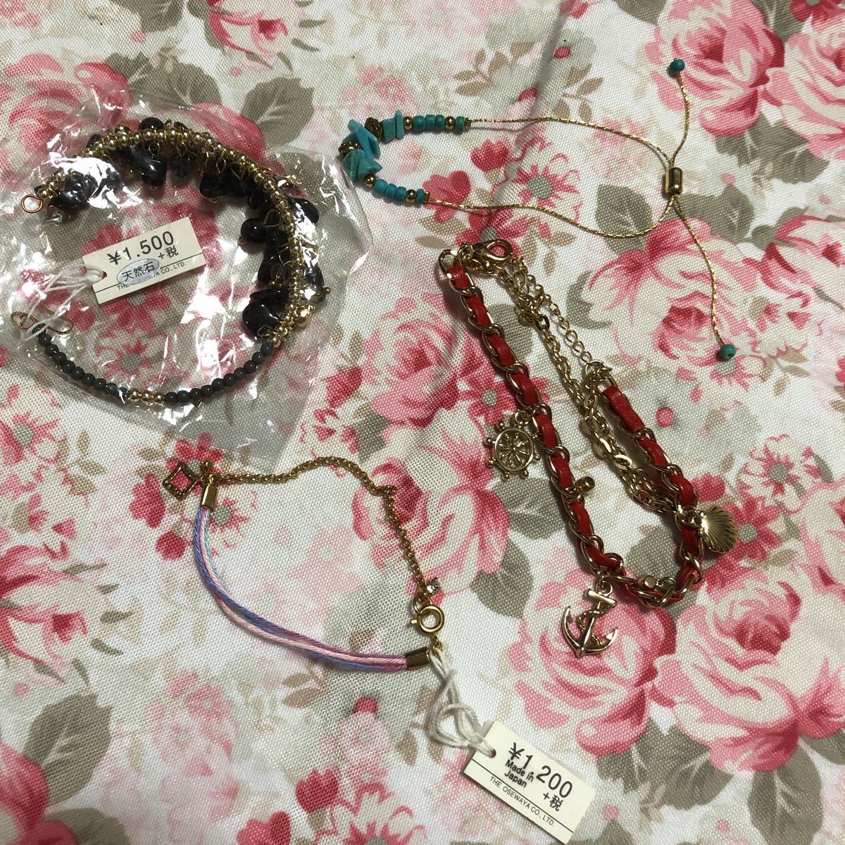 ブレスレット4個セット 天然石、ターコイズ、シェルイカリ海モチーフ 赤 黒 青