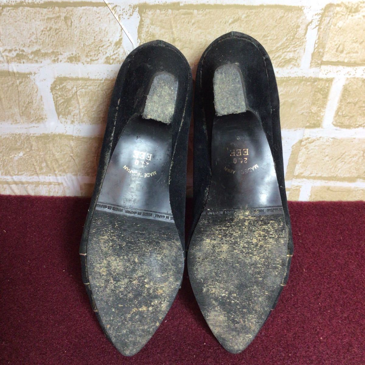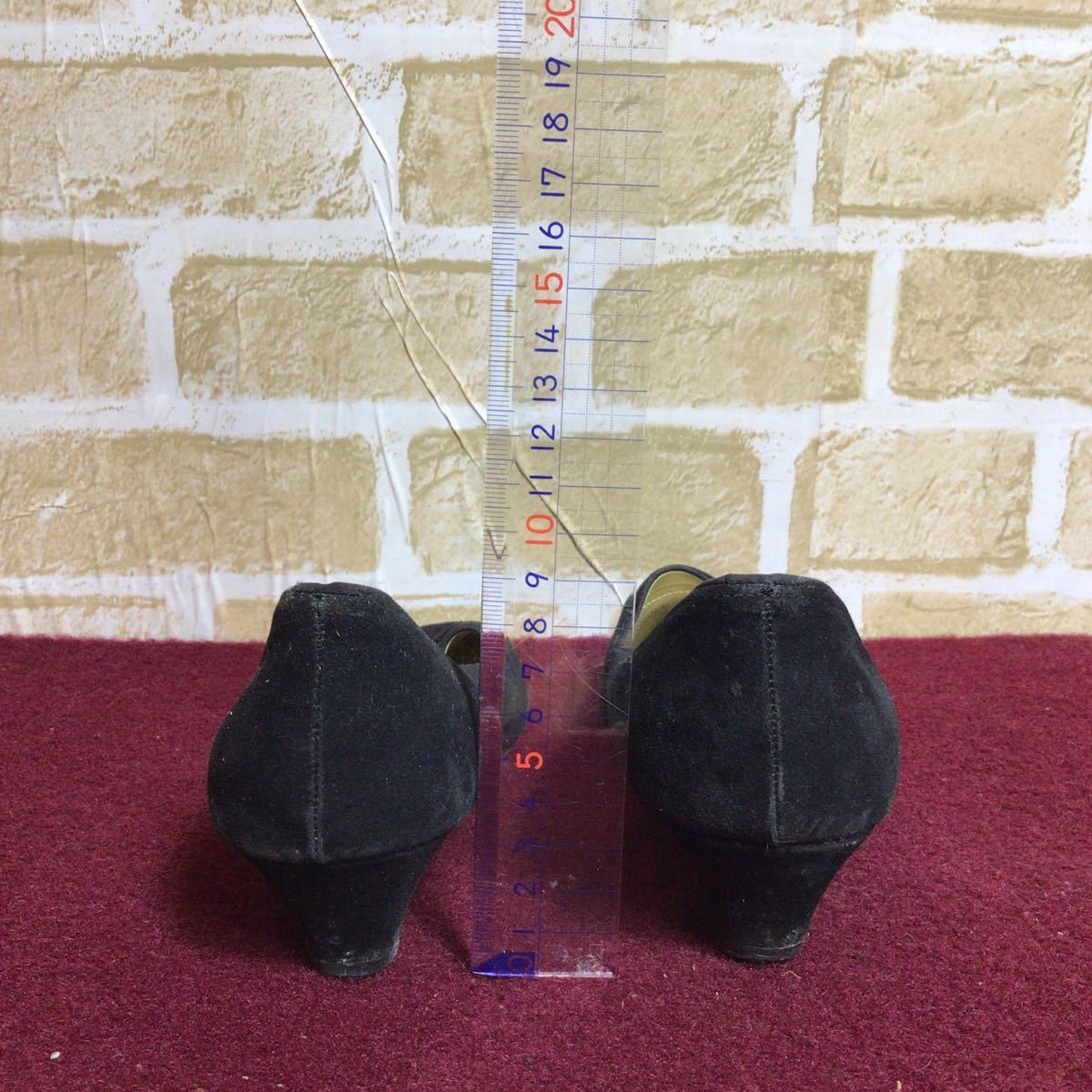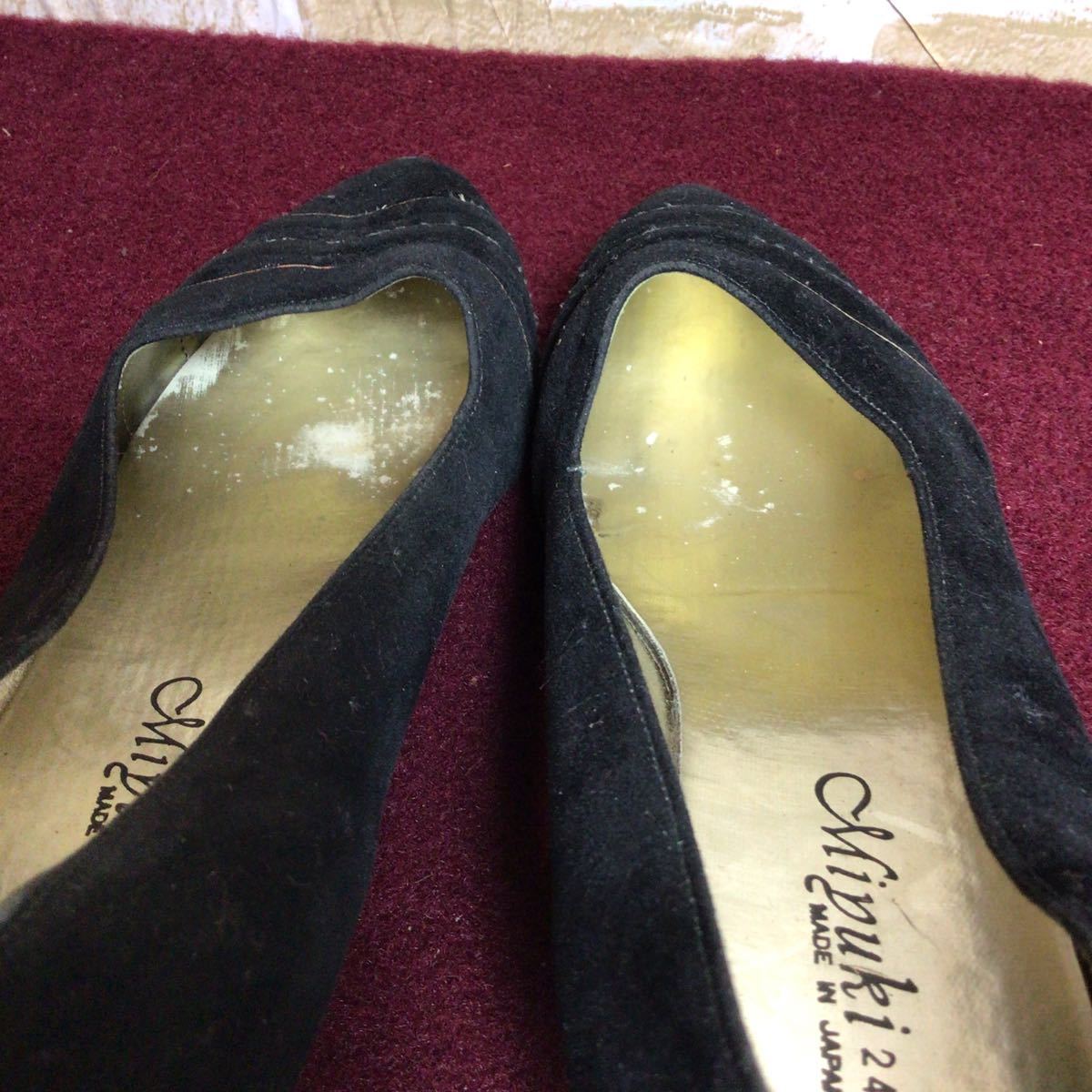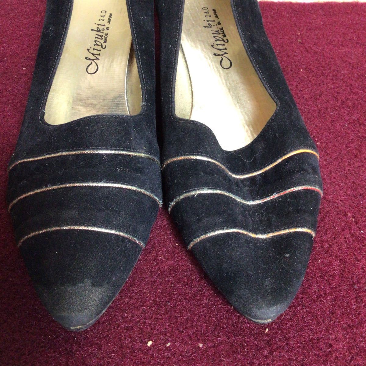 【売り切り!送料無料!】A-128 スエードパンプス!24.0cmEEE!黒!ゴールドライン!可愛い!普段使い!結婚式!パーティー!ドレス!ローヒール!中古!
