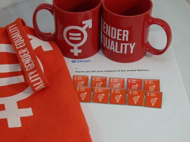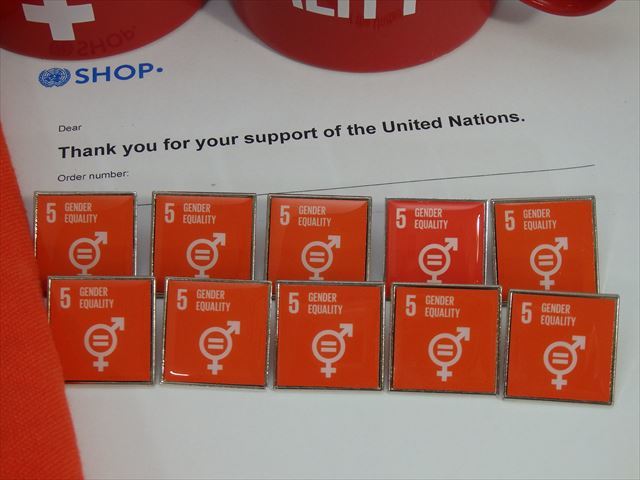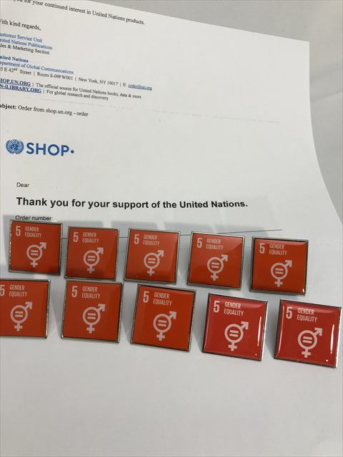 (国連ブックショップ購入・送料無料)SDGsピンバッジ 10個(8800円(税込)(5:ジェンダー平等の実現 ・ジェンダーイコール(再生素材)UN36