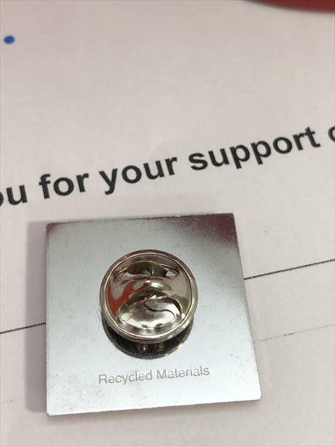 サイズcm(縦×横)2.5×2.5 素材:金属・エナメル加工(recycled material 回収品; 再生材料、ラバークラスプ付リサイクル素材)