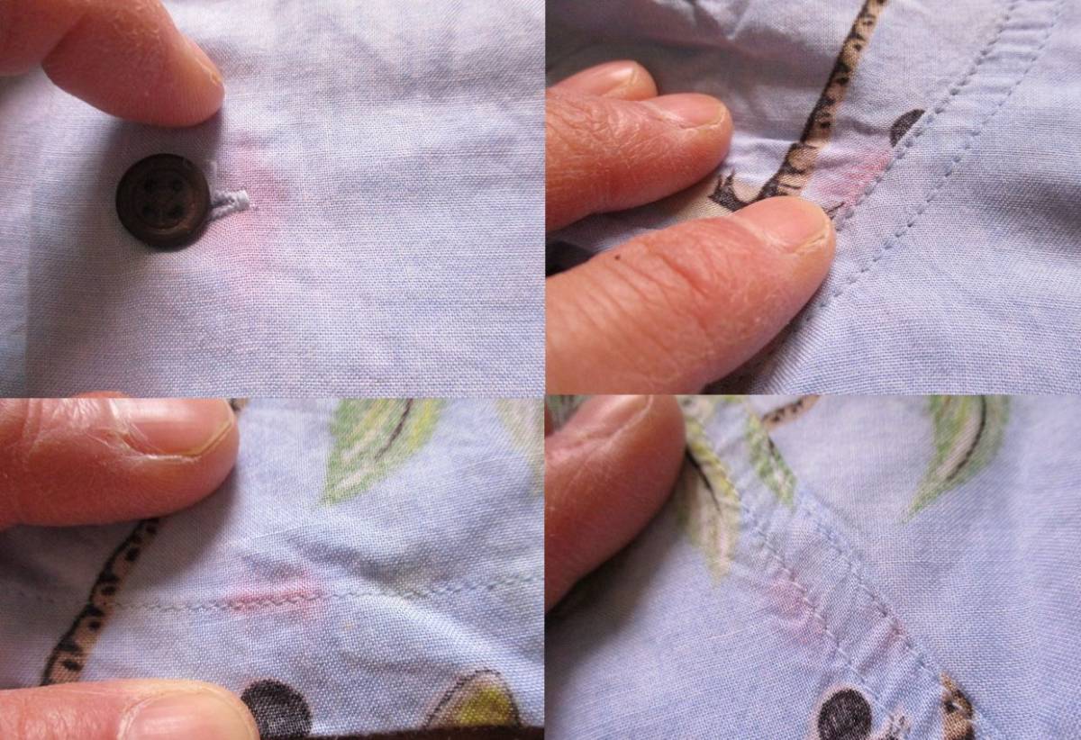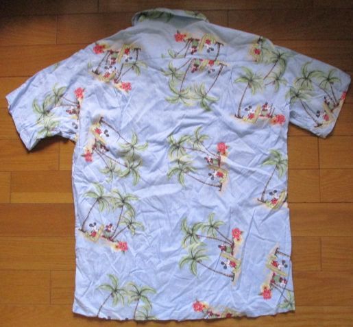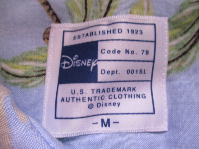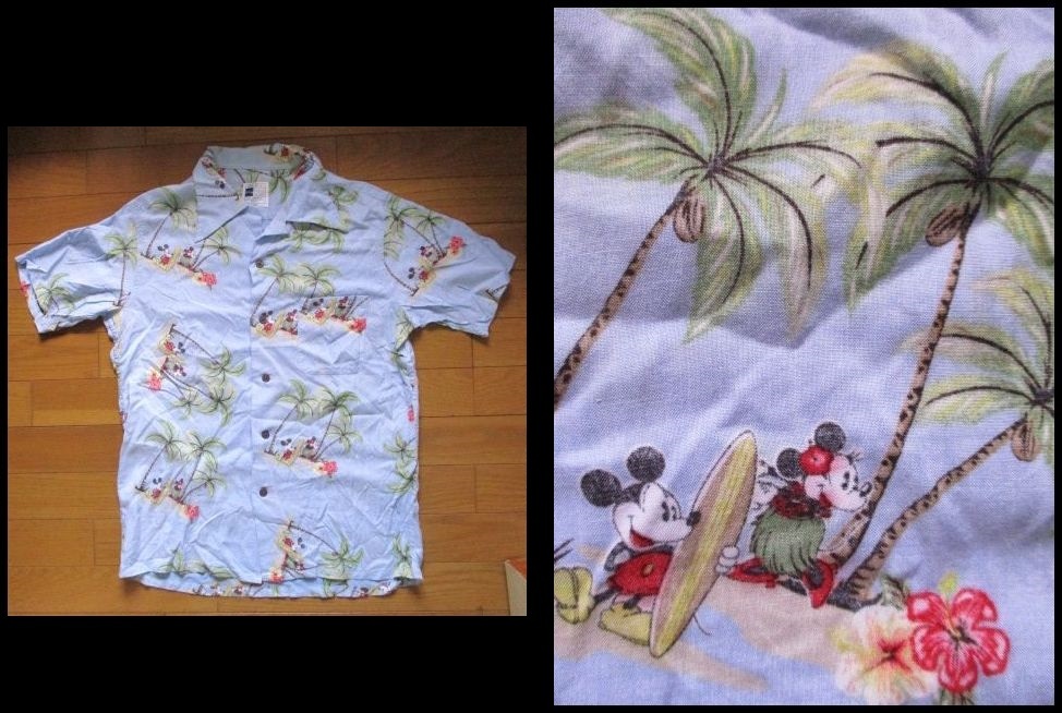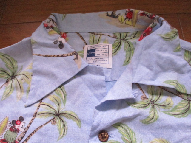 即決有 ミッキーマウス アロハシャツ 水色 Mサイズ ミニーマウス 総柄 サーフィン SURF レーヨン100% 赤色移り Disney ハワイ